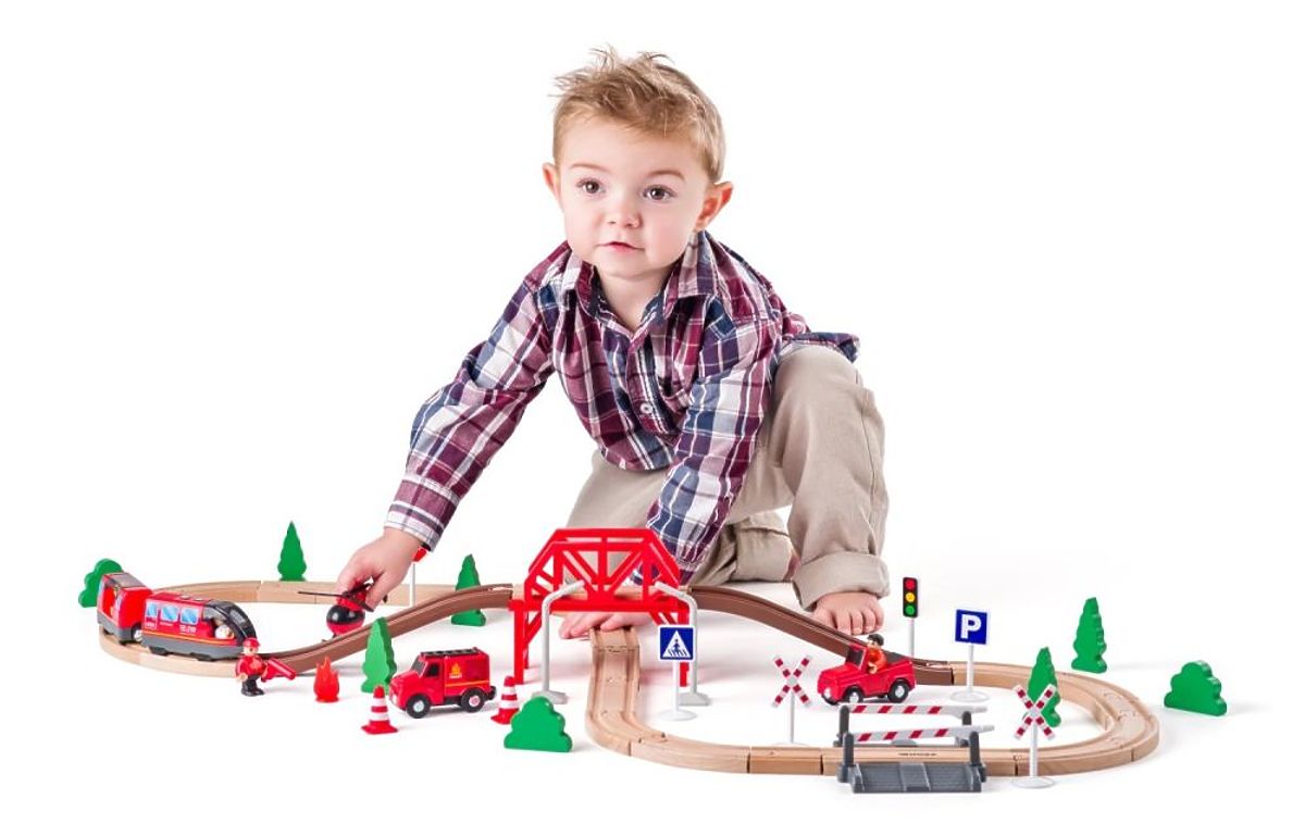 Lesena proga češkega proizvajalca igrač Woody je fantastična izbira za vsakega triletnika, ki sanja o tem, da bo v prihodnosti postal gasilec. Komplet vsebuje ne samo celotno železniško infrastrukturo z mostom, prometnimi znaki in zapornicami, ampak tudi štiri vozila, ki so nepogrešljiva za gasilce pri različnih posebnih akcijah.