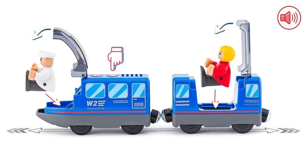 Lokomotiva naredi na otroka čudovit vtis, ko se premika po tirih brez kakršne koli pomoči. Dodatna atrakcija so odpirajoči se pokrovi za strojevodjo in potnika. Po odprtju jih je mogoče odstraniti. Figurice imajo gibljive okončine. Dober oprijem vagonov na lokomotivo zagotavlja magnet, nameščen na njenem koncu.