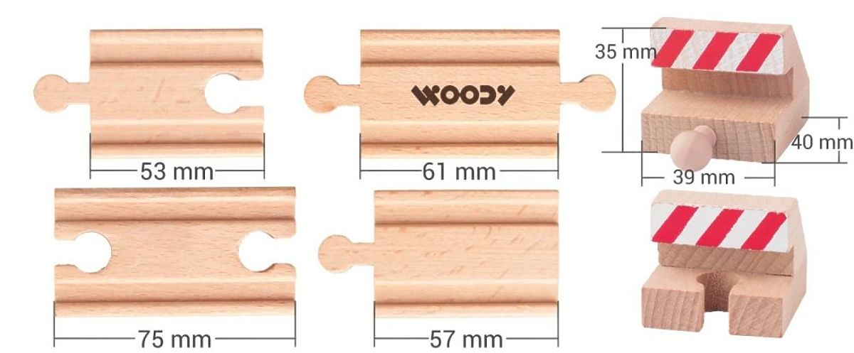 V kompletu boste našli 6 različnih elementov, ki olajšajo ustvarjanje lastnega projekta vlakov.