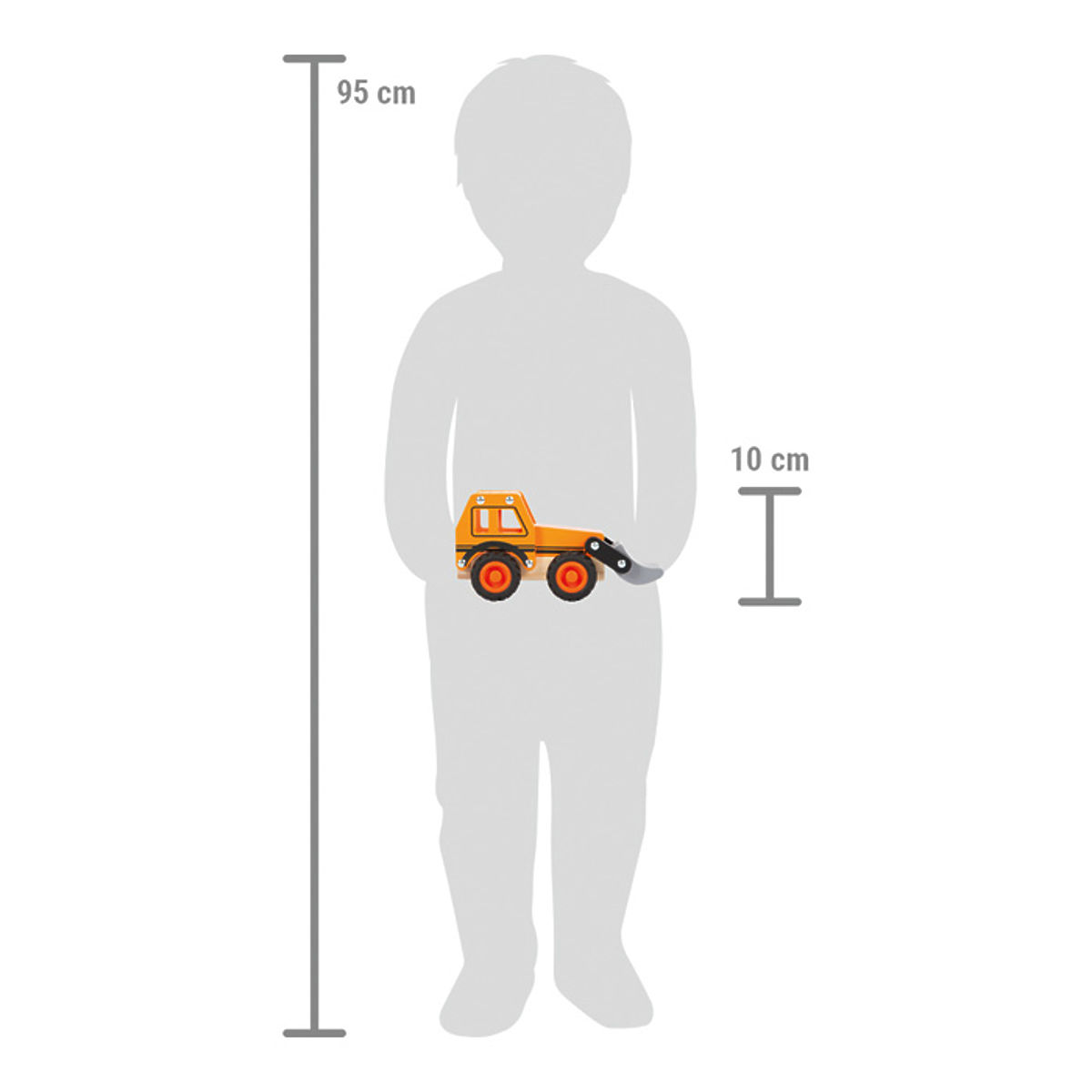 Dviganje in premikanje bremen v otroški sobi, da, to je mogoče. Ta terenski bager, izdelan iz certificiranega lesa FSC®, prevaža pomembne materiale po otroški sobi na robustnih gumiranih kolesih. Bager, opremljen s premičnim rezilom, zagotavlja kreativno in realistično zabavo pri igranju vlog v otroški sobi. Zaradi zaobljenih robov in okenskih odprtin ga lahko majhne otroške roke enostavno primejo in premikajo. Obraz na sprednjem delu avtomobilčka dodaja osebnost in spodbuja k ustvarjalni in domiselni igri. V kabini voznika je tudi dovolj prostora za figurico, ki jo je mogoče vstaviti v gradbeno vozilo spredaj. Figurica ni priložena. Glavne lastnosti: razvija koordinacijo rok in oči, dotik in motoriko premično rezilo gumirana kolesa FSC® 100% les Znamka in certifikat FSC® (Forest Stewardship Council) zagotavljata, da les, iz katerega je izdelek izdelan, ni bil nezakonito posekan in izvira iz gozdov, ki so upravljani na okolju prijazen ali naravi prijazen način, pri čemer se upoštevajo stroge okoljske in socialne zahteve. Znamka FSC® na izdelku pomeni, da s svojim nakupom pomagate varovati gozdove in podpirate okolju prijazno, odgovorno ali naravi prijazno gospodarjenje, zaradi česar so naši gozdovi stabilnejši, bolj zdravi, imajo naravno vrstno sestavo in bolje prenašajo negativne posledice podnebnih sprememb.