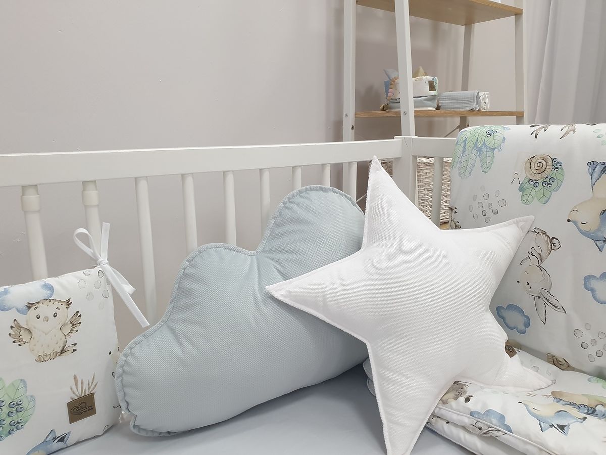 Svetlo siva dvostranska okrasna blazina v obliki oblaka iz prijetnega žameta. Blazina bo primerna za dekoracijo vsakega prostora ali postelje. Polnjena je z mehko silikonsko kroglico.