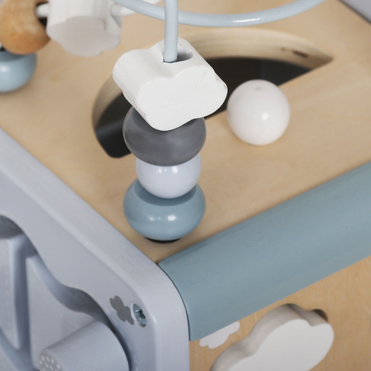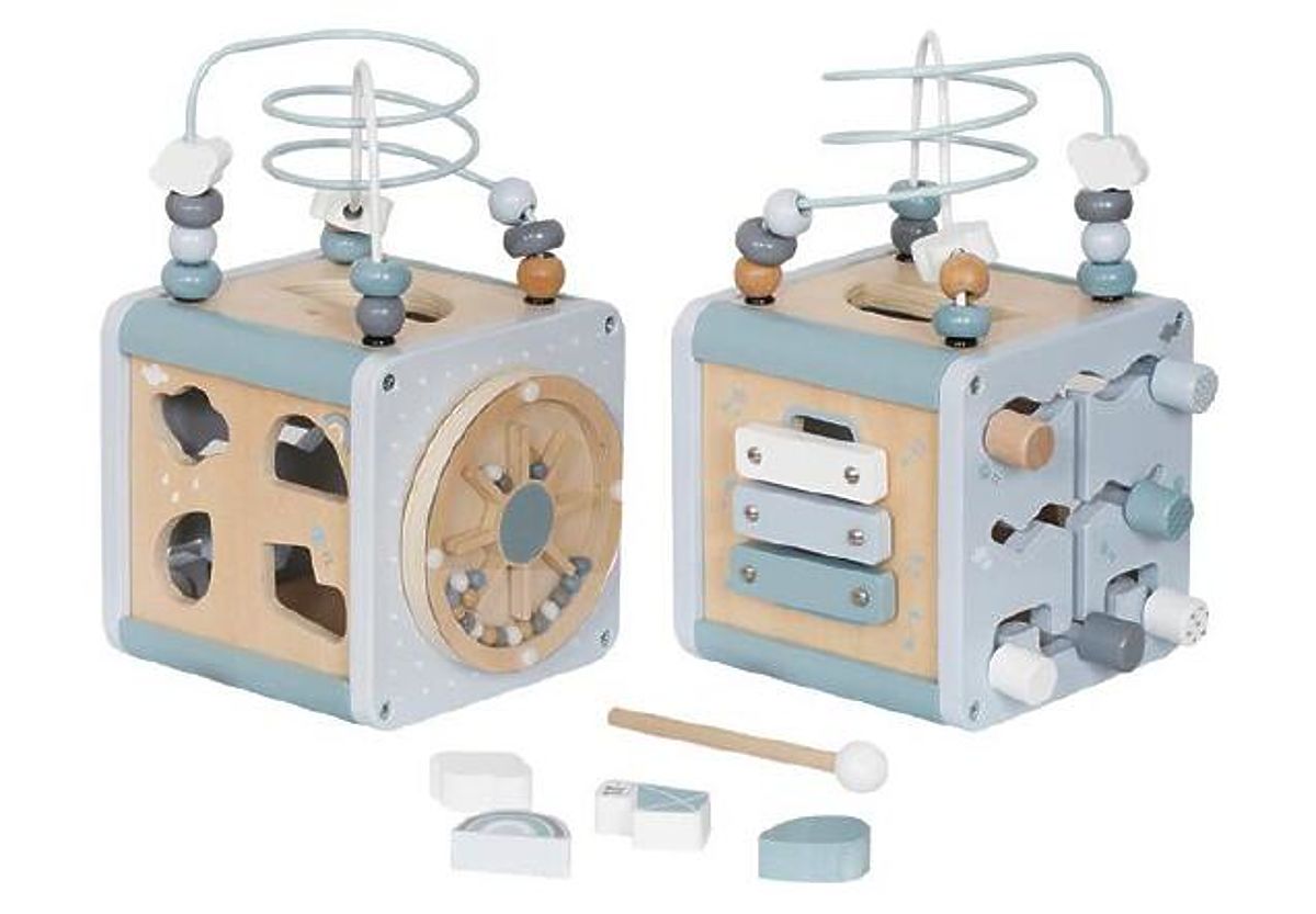Interaktivna lesena kocka je odličen pripomoček za razvoj fine motorike, koordinacije rok in oči ter razmišljanja. Ponuja pester svet iger, ki otroke ne le zabavajo, ampak jih tudi učijo. Primerna za otroke od 4 mesecev do 6 let.