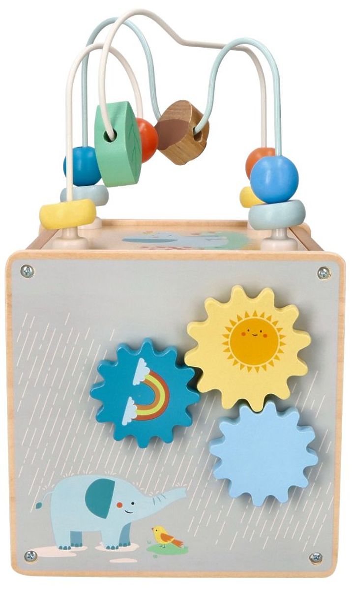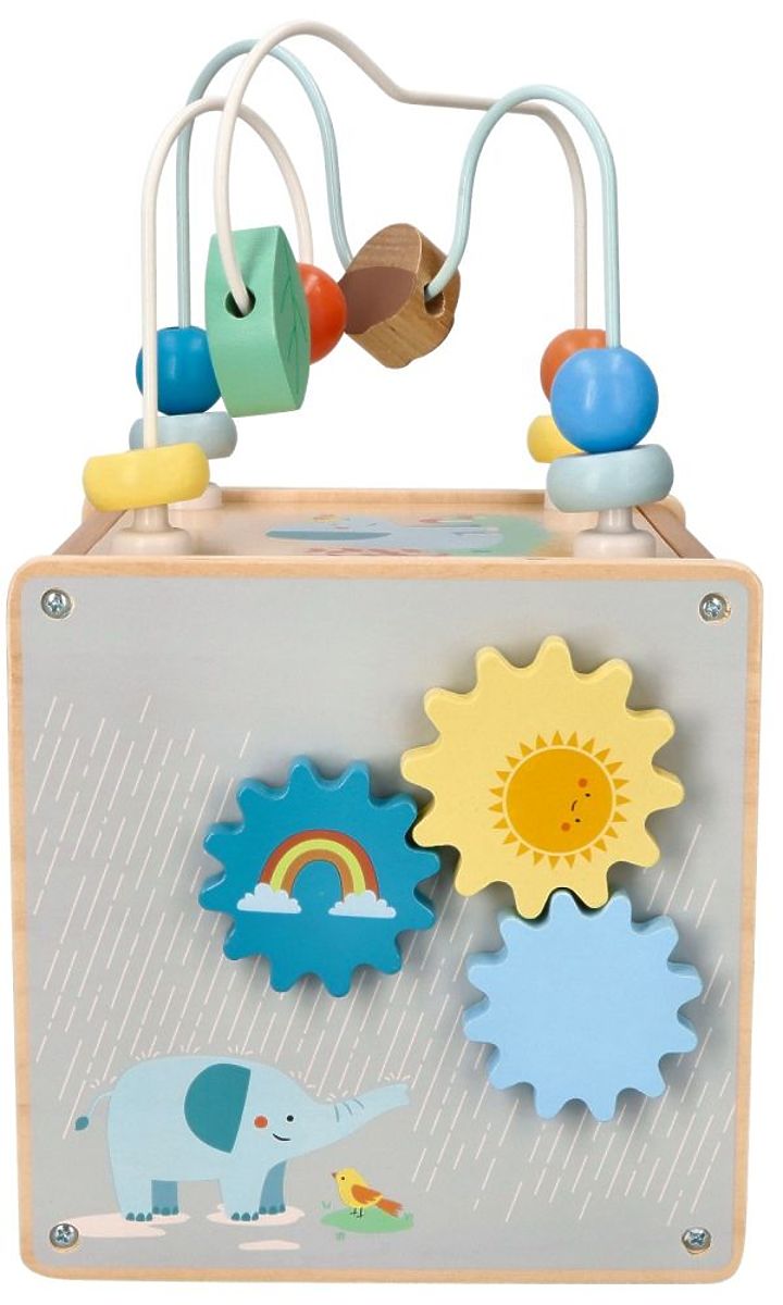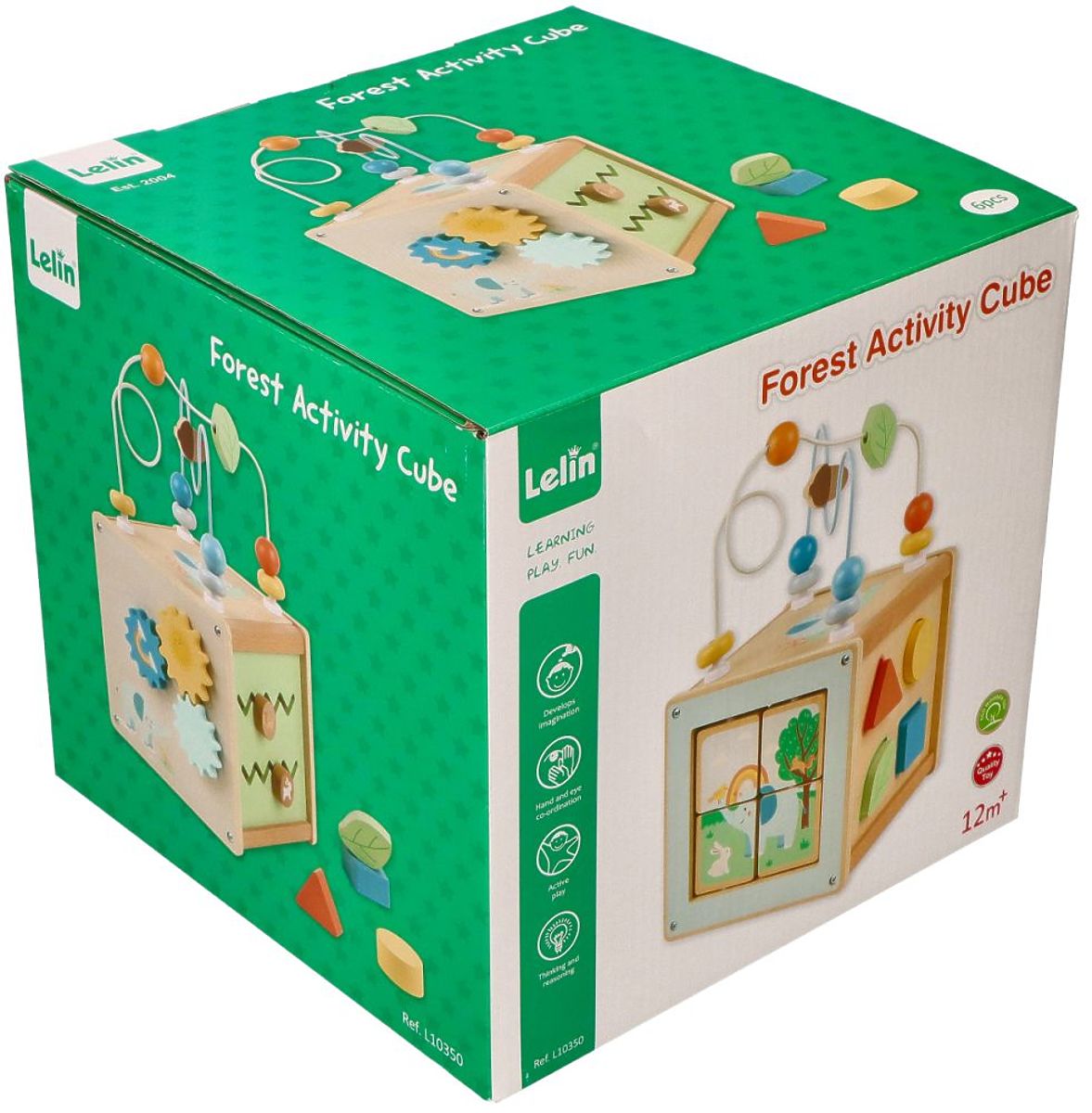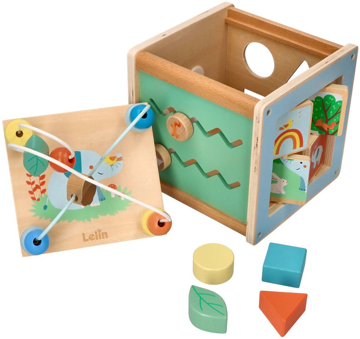 Nova kocka od Lelina ponuja veliko zabave in vadbe za majhne prstke. Celotna kocka je okrašena z živalmi, ki že čakajo na skupno zabavo. Veseli slon, ptiček, veverica in zajček vas bodo spremljali pri odkrivanju atrakcij te igrače. Kocka je izdelana iz visokokakovostnega lesa brez ostrih robov - je popolnoma varna za otroka. Moderen dizajn in očem prijetne pastelne barve bodo zagotovo razveselile vsakega otroka.