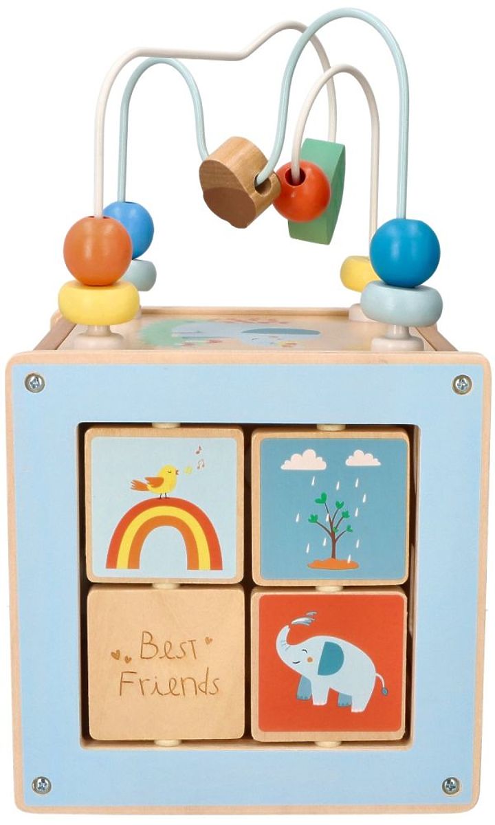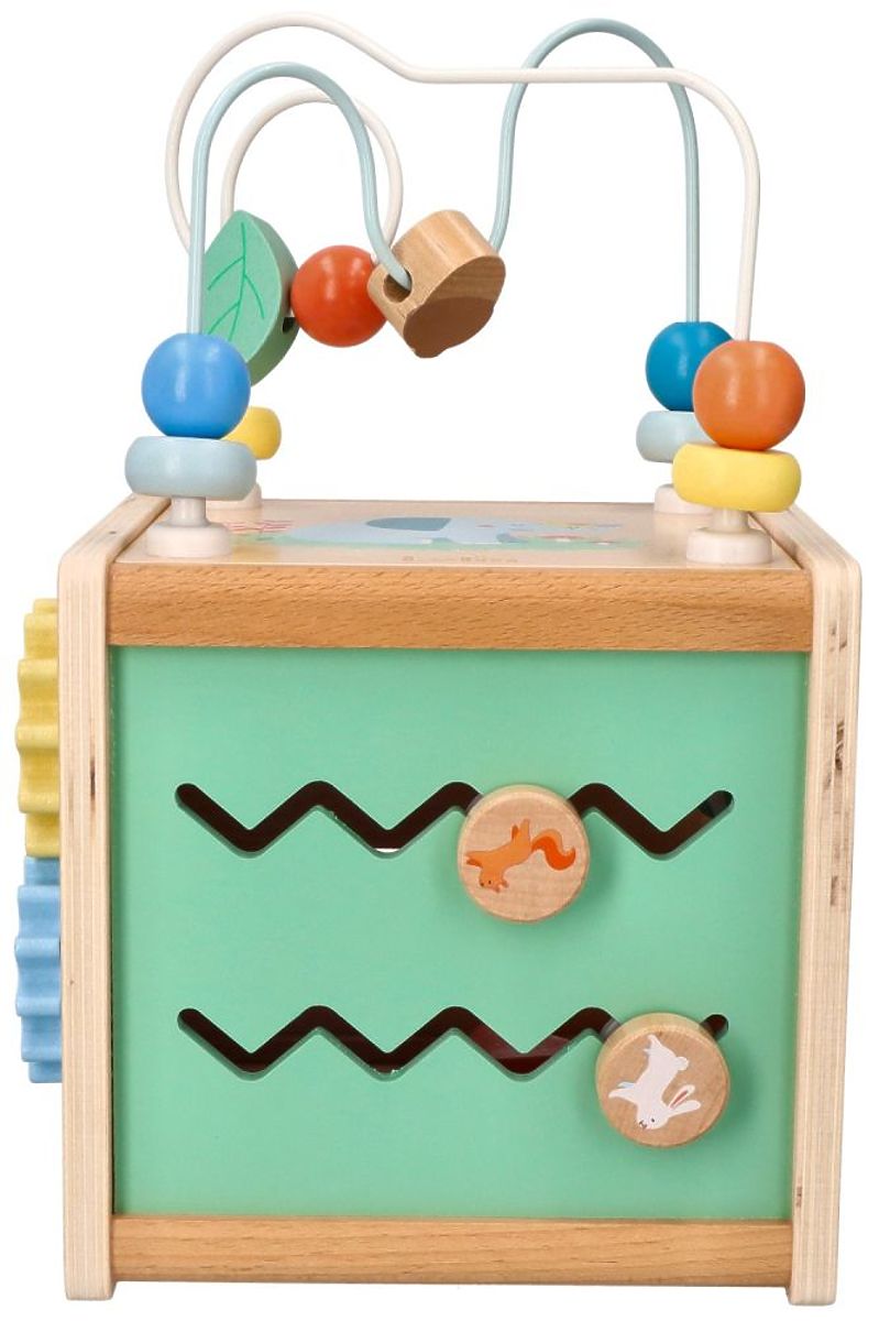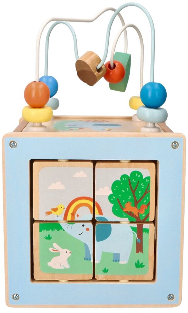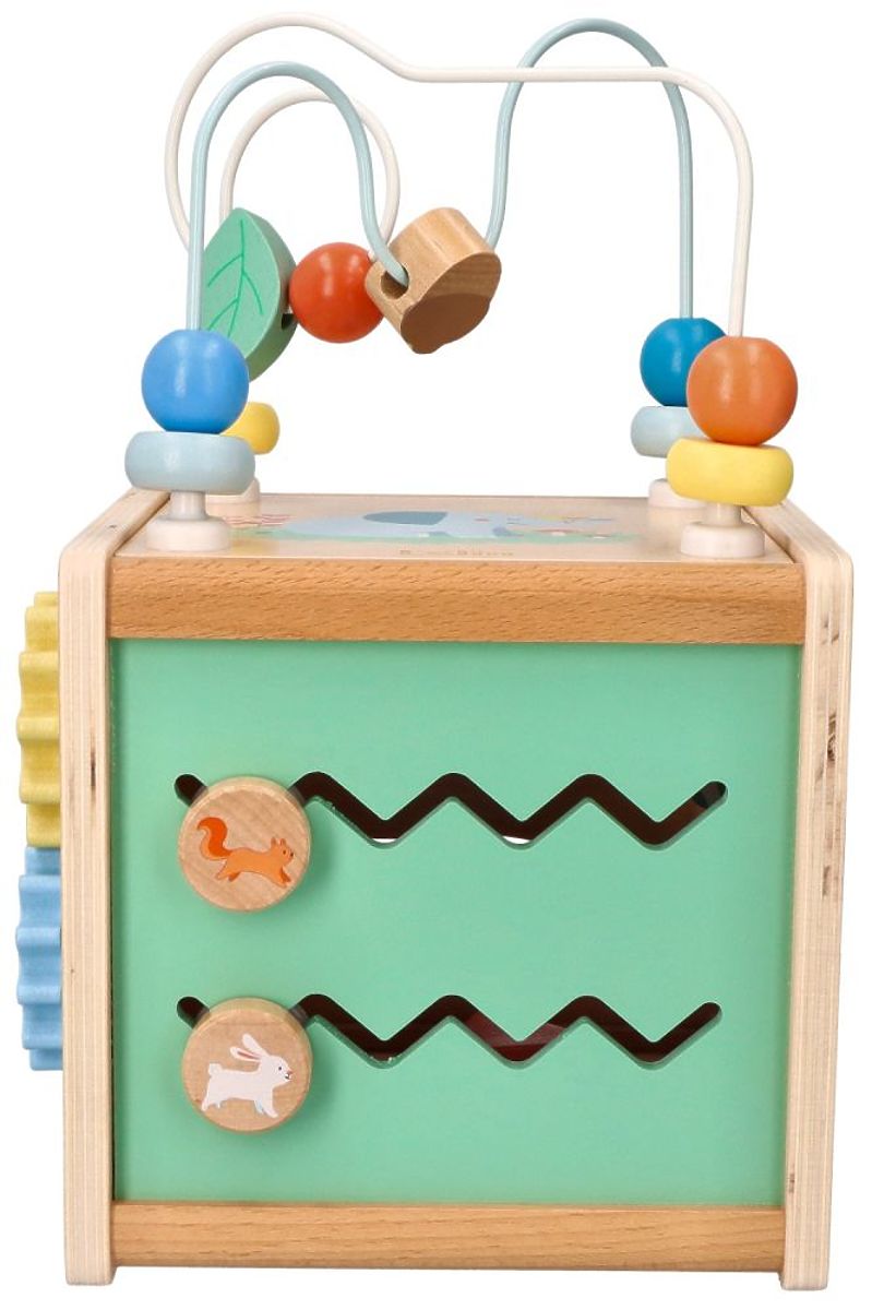 Nova kocka od Lelina ponuja veliko zabave in vadbe za majhne prstke. Celotna kocka je okrašena z živalmi, ki že čakajo na skupno zabavo. Veseli slon, ptiček, veverica in zajček vas bodo spremljali pri odkrivanju atrakcij te igrače. Kocka je izdelana iz visokokakovostnega lesa brez ostrih robov - je popolnoma varna za otroka. Moderen dizajn in očem prijetne pastelne barve bodo zagotovo razveselile vsakega otroka.
