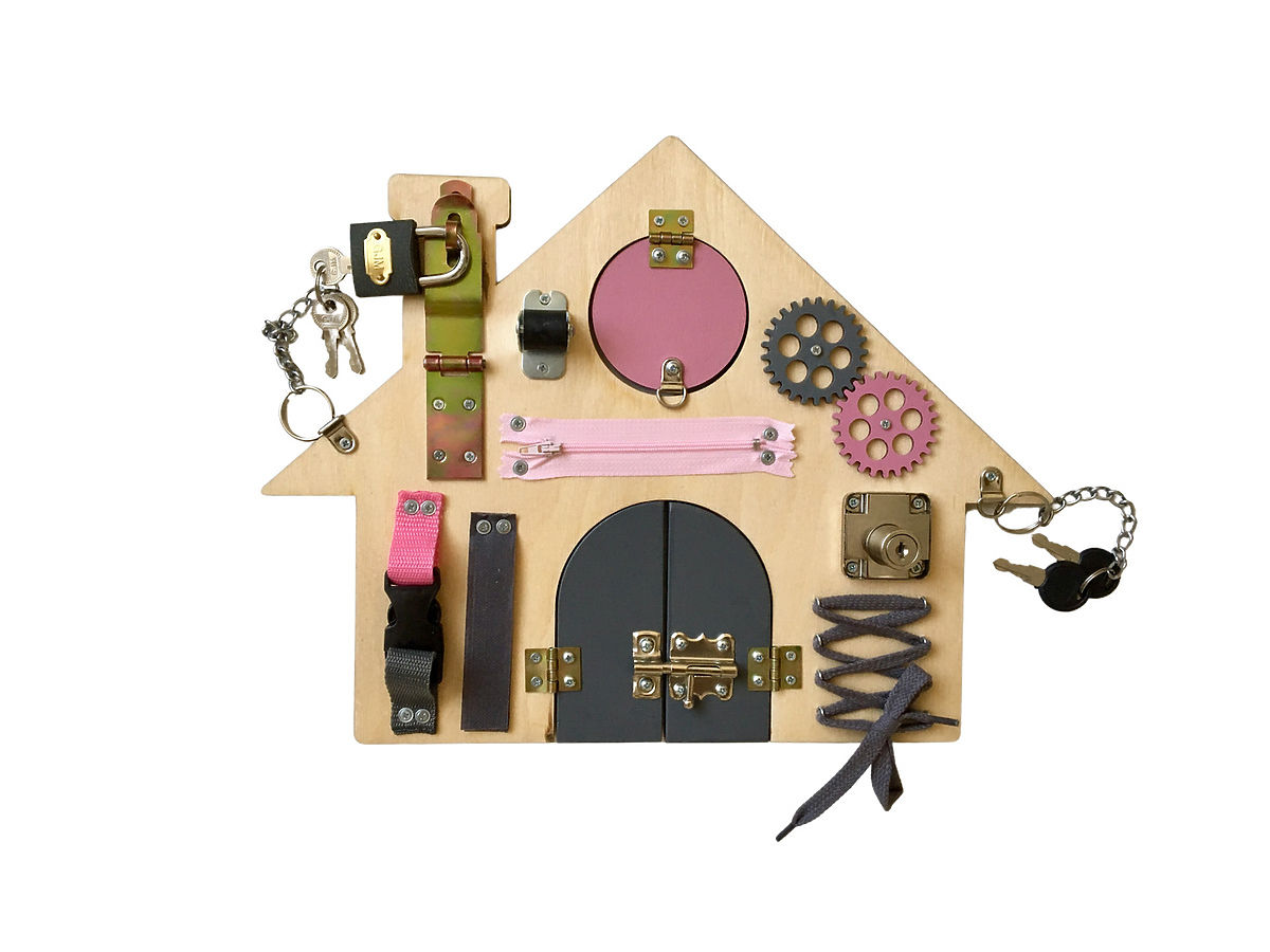 Izvirna lesena lesena deska v obliki hiške, s katero lahko otroci na zabaven način vadijo motorične sposobnosti, ustvarjalnost, logično razmišljanje in tudi koncentracijo.