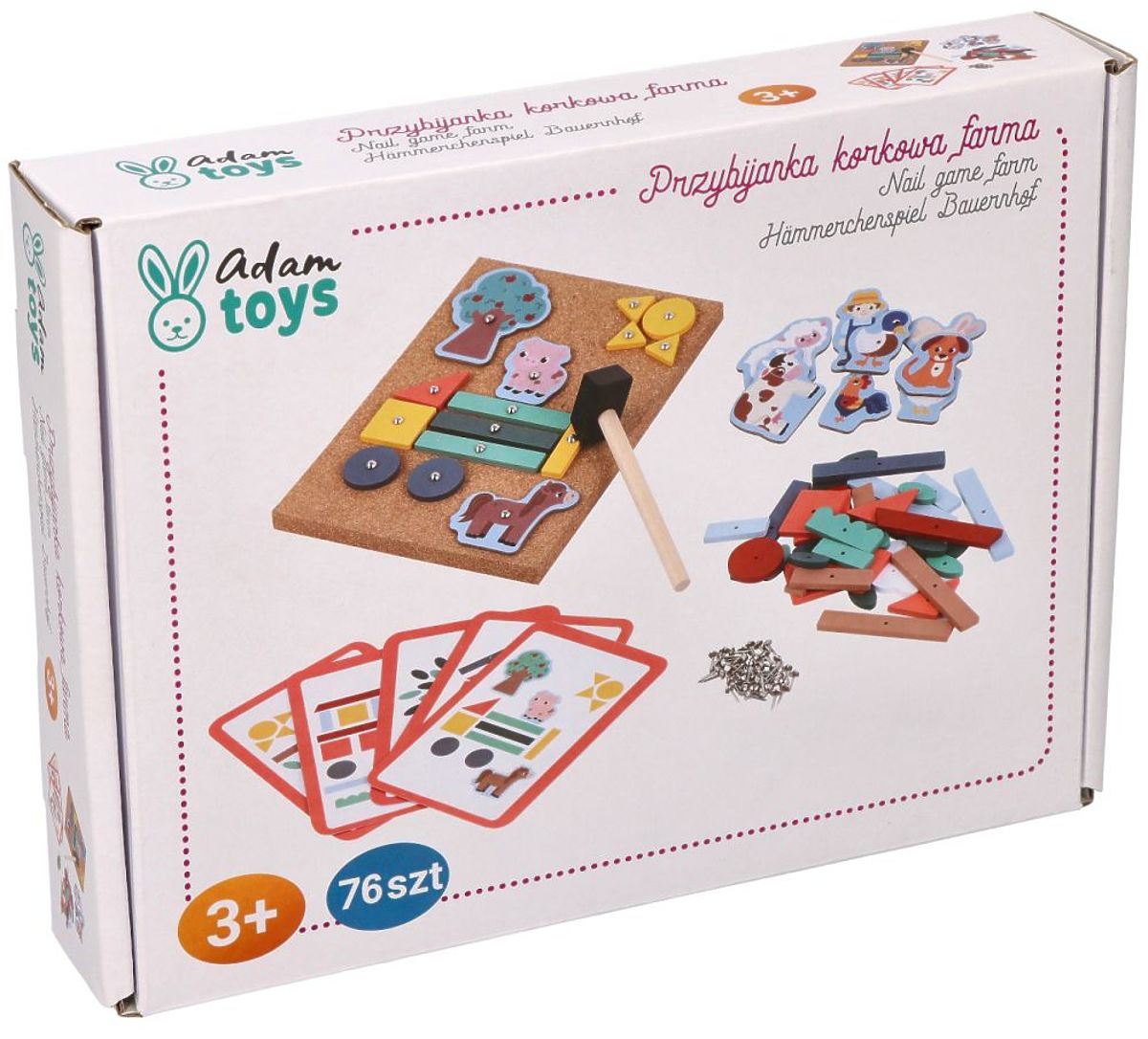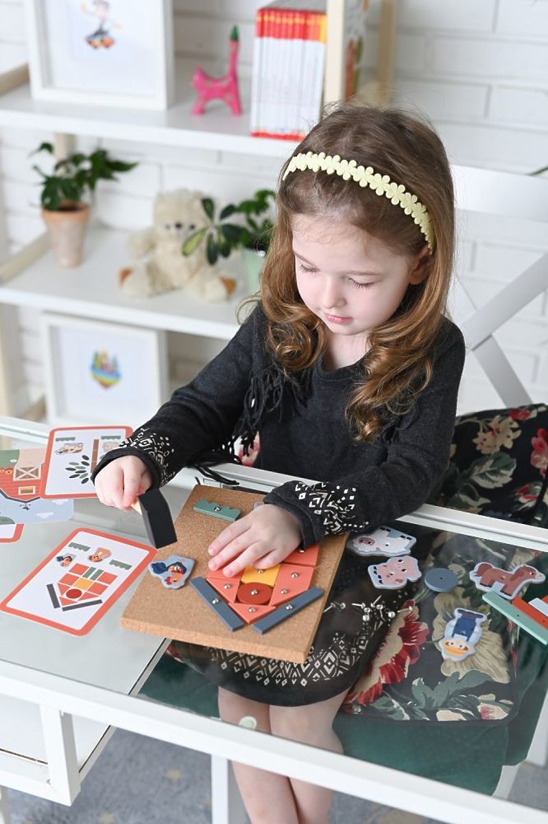 Druga zanimiva ponudba od AdamToys iz serije Kmetija je že na voljo!!! Zanimiva sestavljanka, ki vadi ročne spretnosti in spretnost prstov. Preprosto izberite oblike in jih zabijte v plutovinasto ploščo, da ustvarite sliko. V kompletu boste našli elemente za sestavljanje kmetije, vendar je v resnici število kombinacij in vzorcev ogromno.