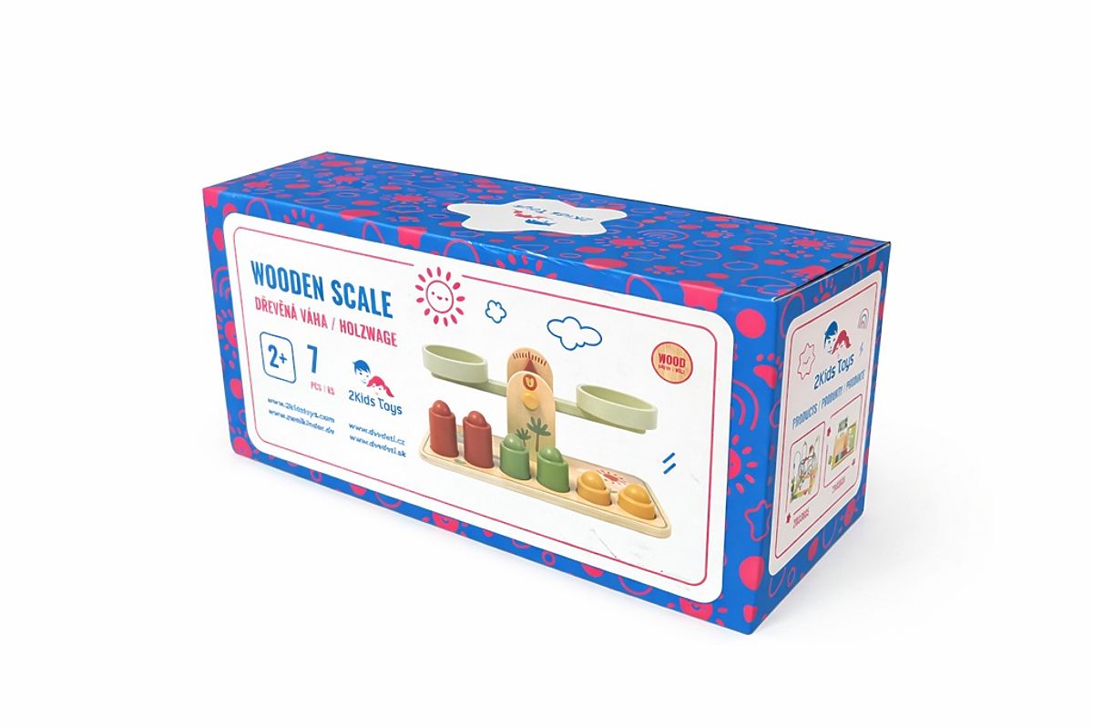 Lesena tehtnica za otroke z motivom safarija in utežmi za učenje tehtanja. .. več