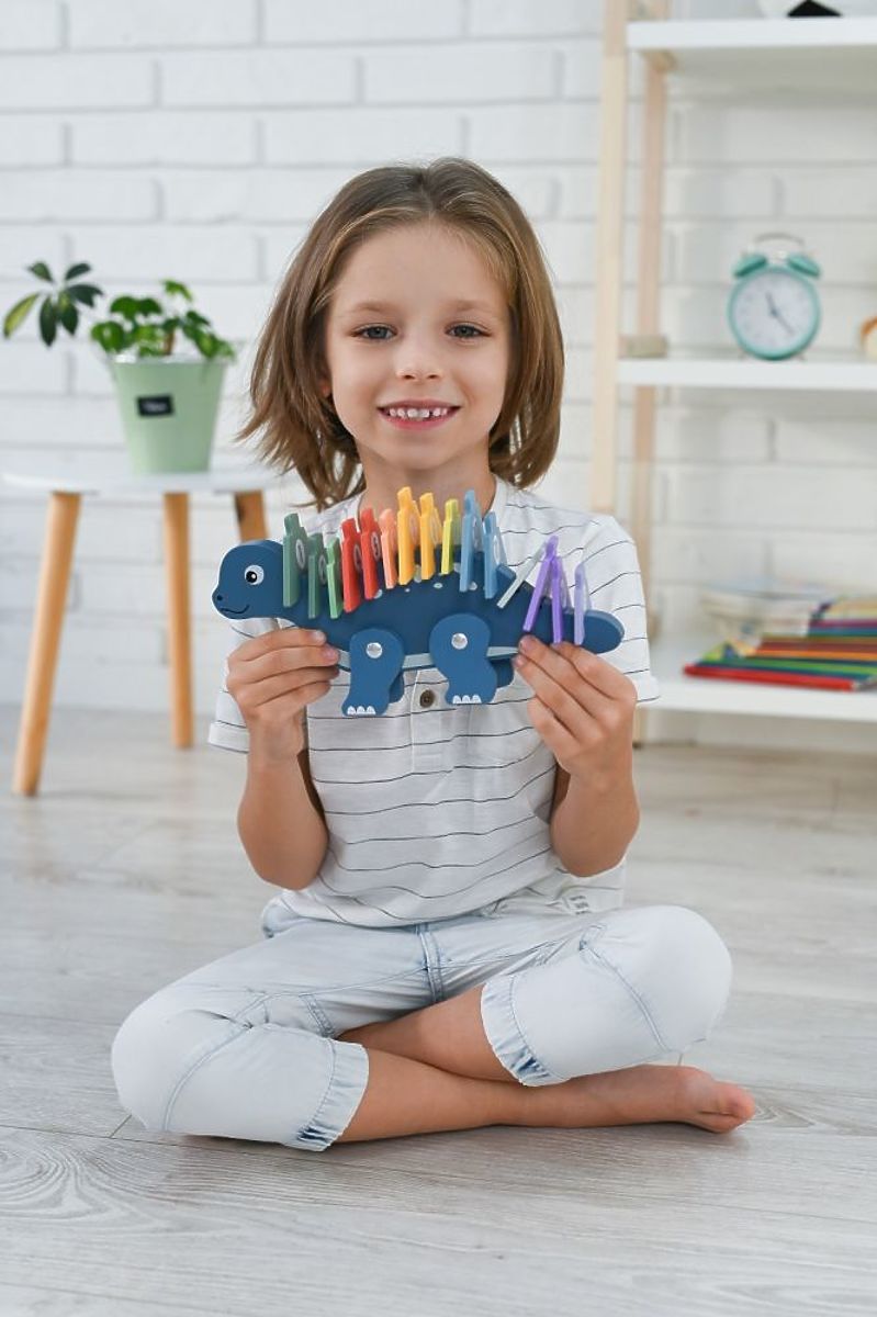 Leseni dinozaver s kompletom številk od 1 do 15. Pomoč pri učenju štetja. Barvne sestavljanke lahko sestavljamo na hrbtu dinozavra, kar olajša njihovo shranjevanje. Dimenzije pakiranja: 25 x 13,5 x 5 cm Starost: 3+ Referenca: N2039 Izjava o skladnosti CE