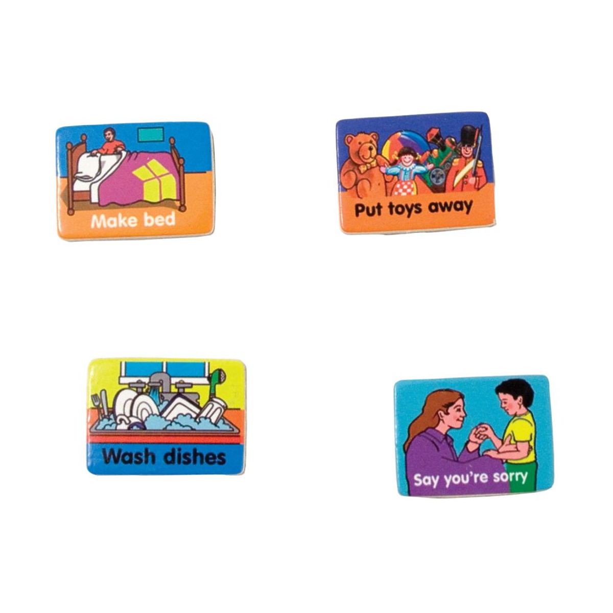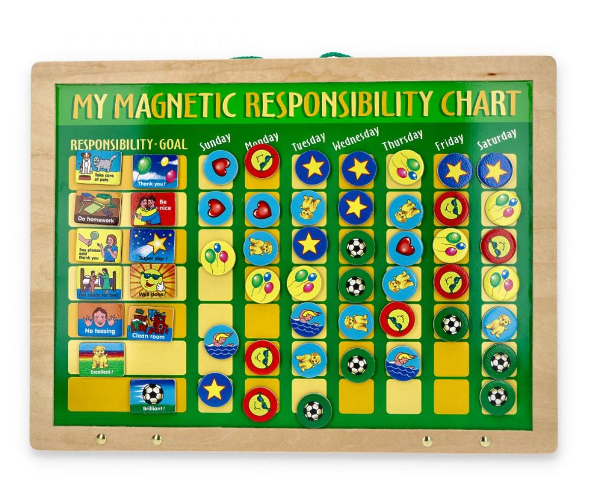 Organizacija časa in načrtovanje dneva sta eni najpomembnejših veščin v življenju vsakega izmed nas. Dobro je poskrbeti, da lahko naši otroci to veščino uspešno pridobijo že od malih nog. Tabla odgovornosti je idealna za ta proces. Otroku omogoča načrtovanje izpolnjevanja osnovnih dolžnosti na določen dan v tednu. V naši trgovini predstavljamo tablo, ki vam pomaga pri določanju pravil in načel, ki bi jih otrok moral poznati, ter pri nagrajevanju z ustreznim simbolom za njihovo upoštevanje.