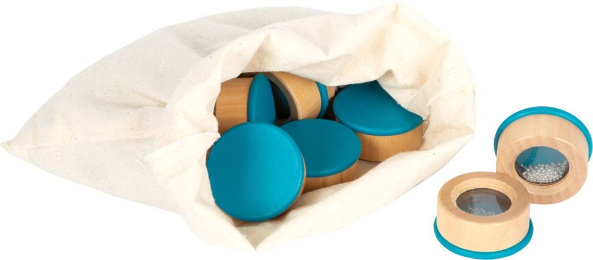 Cilj te senzorične igre je prepoznavanje, poimenovanje in povezovanje v pare ustreznih valjev na podlagi poslušanja njihovih zvokov. 16 lesenih škatlic je napolnjenih z različnimi materiali, npr.: lesenimi kroglicami, kovinskimi kroglicami ali plastičnimi biseri, ki ob tresenju oddajajo različne zvoke. Zaradi prozornih oken na spodnji strani posod lahko preverite njihovo vsebino. Igra je namenjena 1-4 igralcem. Po koncu igre lahko lesene škatlice shranite v praktično bombažno vrečko.