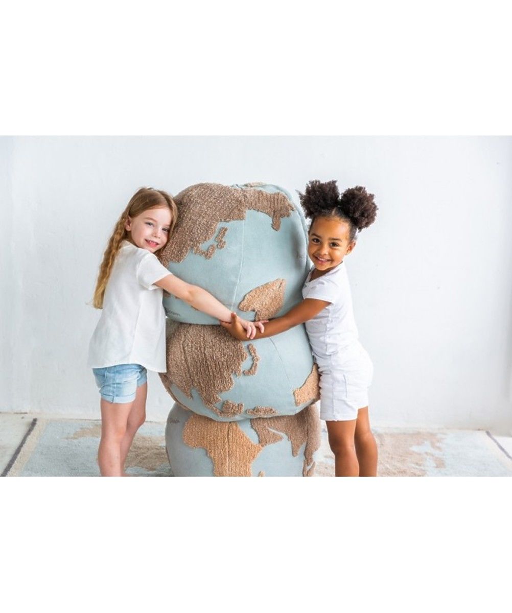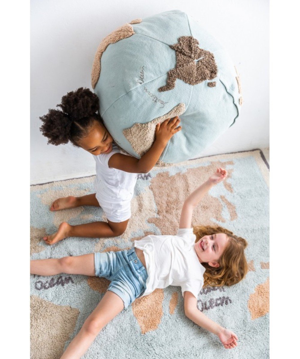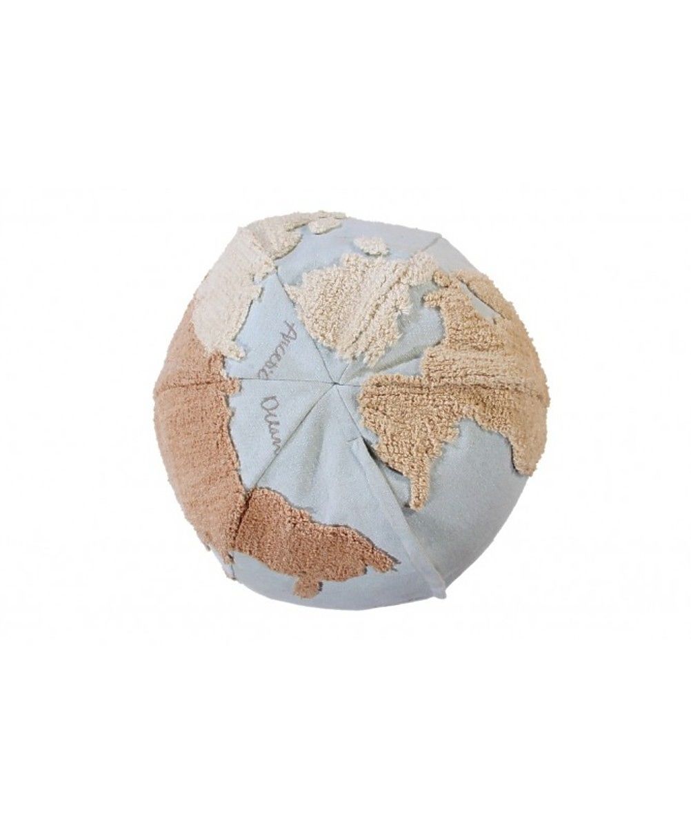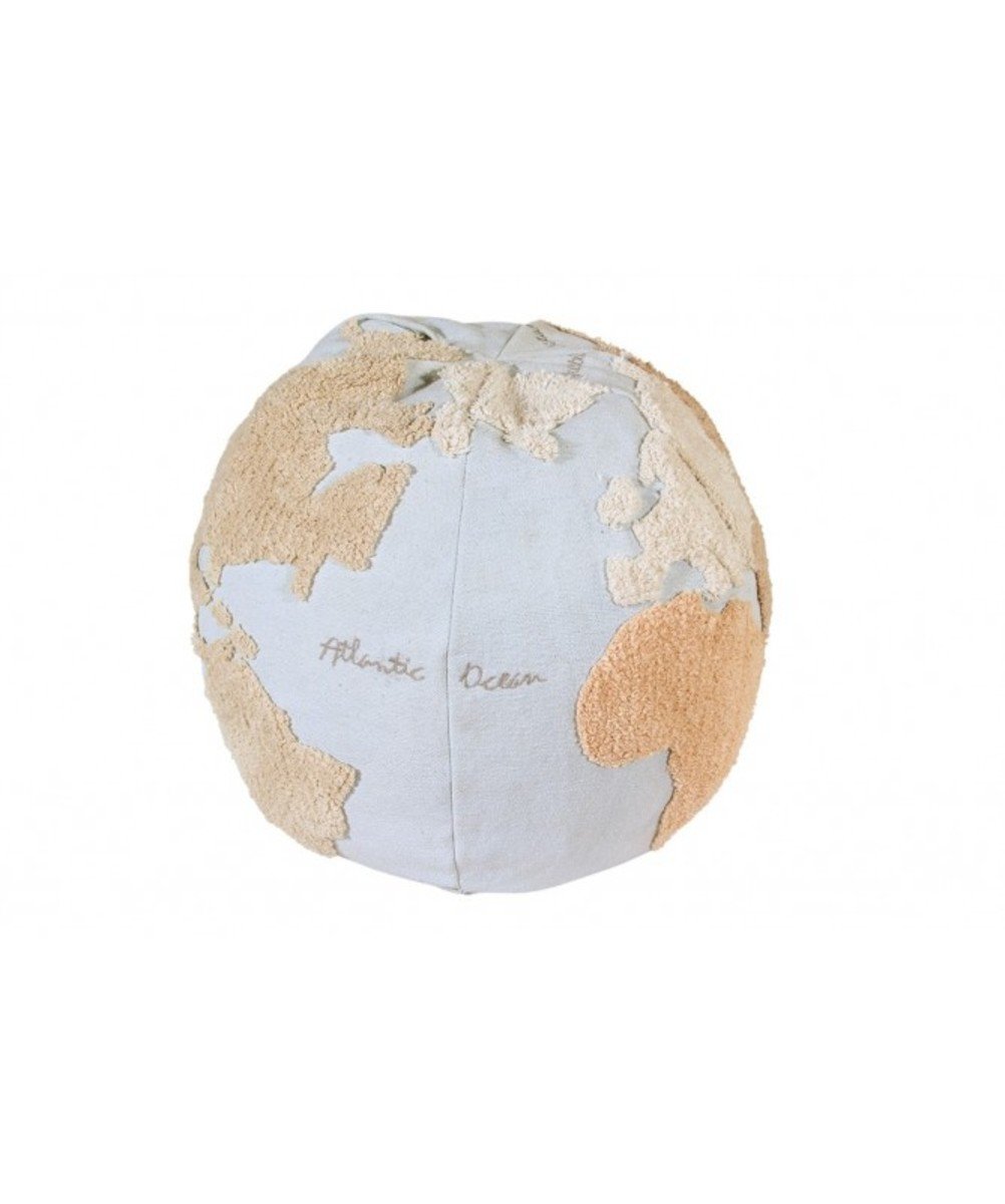 Sedež (puf) v obliki globusa je mehka alternativa foteljem in kavčem. Odlično je primeren za otroško sobo za sedenje ali kot naslonjalo. Zasnova svetovnega zemljevida v naravnih odtenkih na bledo modrem ozadju se prilega prostorom vseh barv in stilov.