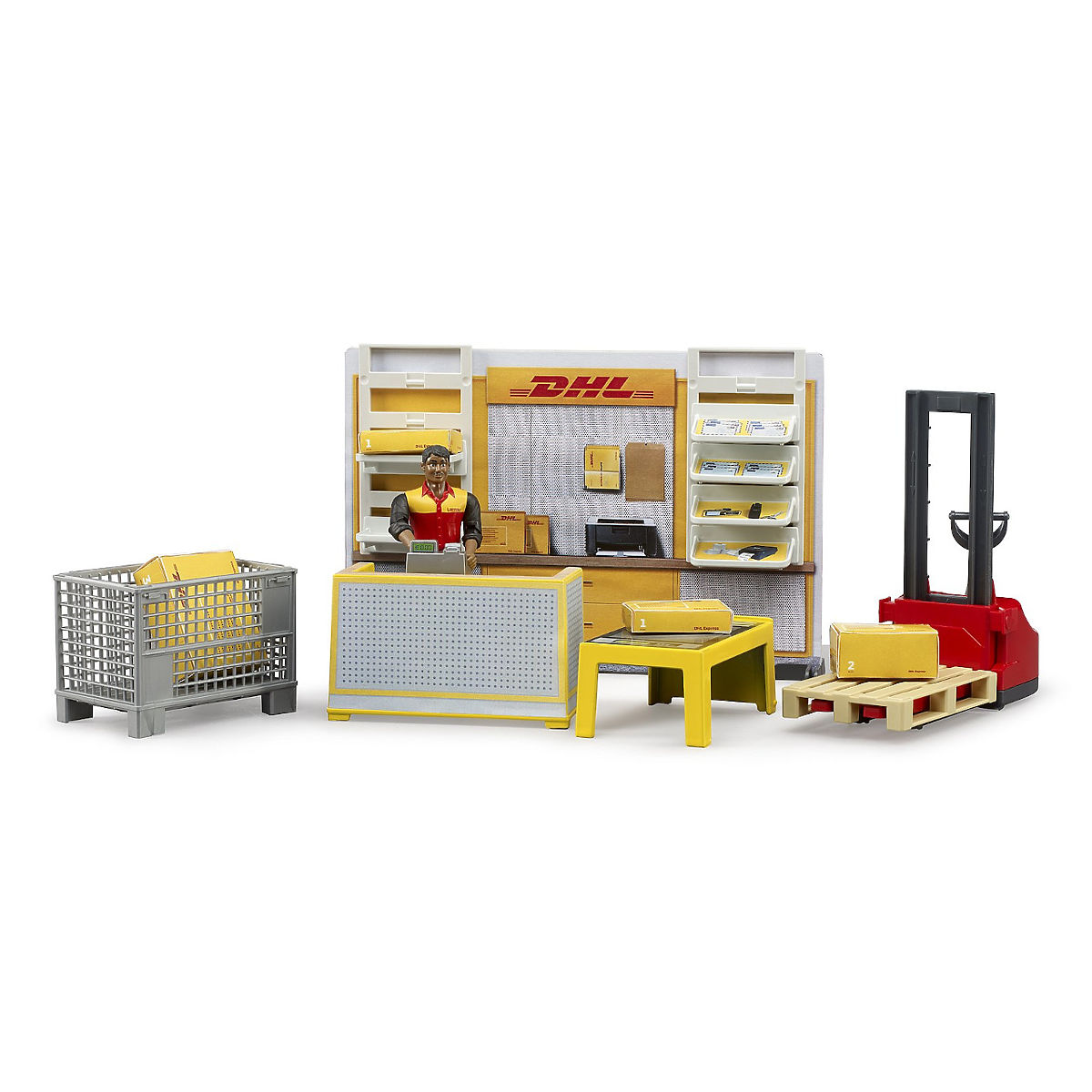 Na tej podružnici svetovno znanega prevoznega podjetja lahko strankam pomagate pri oddaji ali prevzemu njihovih pošiljk. Se boste ujeli z dobavljeno figurico in postali vzoren zaposleni? Za delo zaposlenega služi delovna miza, opremljena z blagajno, vodljiv paletni voziček z nastavljivimi vilicami in številni drugi dodatki. Igrača vsebuje privlačno potiskane kulise, ki uporabljajo prefinjen variabilni sistem BRUDER BWORLD, ki vključuje raznolike regalne in viseče elemente za dodatke in pripomočke. Oglejte si našo ponudbo za primerne razširitve, zlasti vozila, ki ustrezajo modelu. Izdelano v Nemčiji iz kakovostnih materialov. Glavne lastnosti: premična figurica zaposlenega in vodljiv paletni voziček, enostransko potiskana kulisa pošte z 2 policama, pult z blagajno, miza, koš za pakete in 3 paketi, izdelano v Nemčiji.