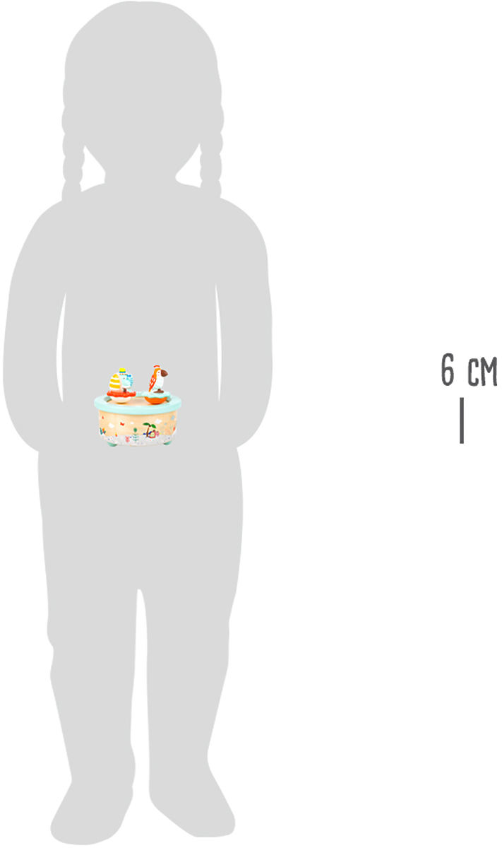 Ko se dan bliža koncu, se ta ljubka živalca veselo vrtita na svojem barvitem podstavku ob pomirjujoči melodiji "Wonderful World". Ko se pesem konča, je čas za spanje! Slonček s papigo sta varno pritrjena na vrhu lesene navijalne glasbene skrinjice s pomočjo magnetov (lahko ju preprosto ločite in otroci se lahko z njima igrajo na mizi ali tleh). Prava čarobna uspavalna pomoč za nočno omarico v otroški sobi ali za okras v vrtcu. Spodbuja kreativno in domišljijsko igro. Glavne lastnosti: enostavno upravljanje, spodbuja domišljijo, magnetna in navijalna funkcija, predvaja melodijo "Wonderful World"