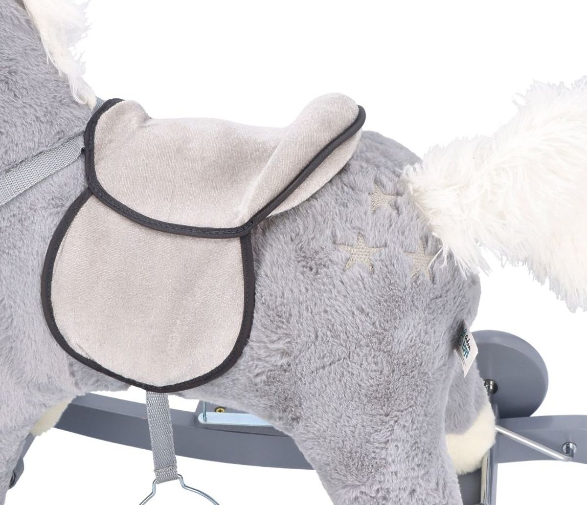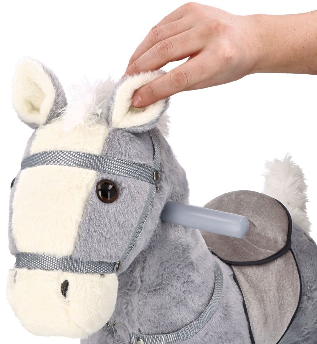 Dodatna lastnost gugalnega konja je zvok, ki ga naš interaktivni konj oddaja med vožnjo. Dovolj je, da pritisnete eno uho in zaslišali boste zvok konjskih kopit in rezgetanje zadovoljnega konja.