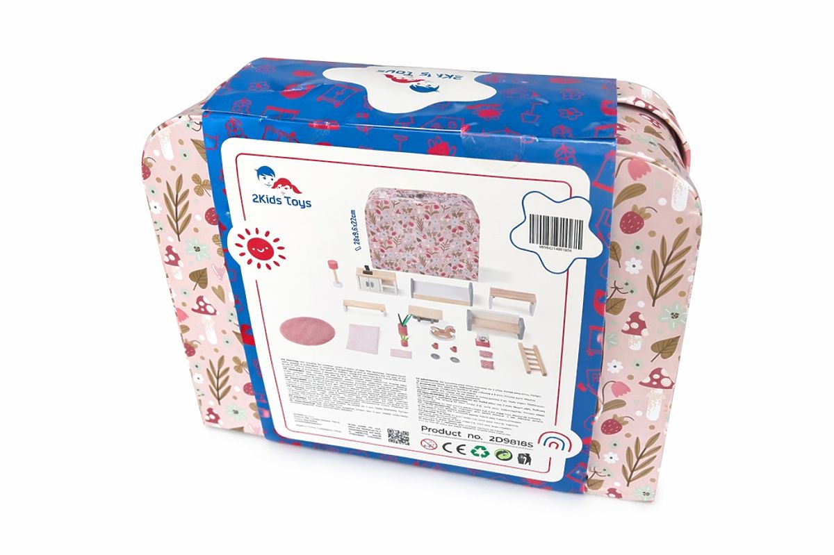 Predstavljajte si čarobni svet, ki se prilega v roko. Majhna hiška za punčke, skrita v elegantnem kovčku. Popolna za potovanja, igro doma ali ob obisku pri babici. Ta izvirna hiška v kovčku se po odprtju spremeni v prijetno bivališče za punčke, polno podrobnih dekoracij, drobnih pohištvenih elementov in sobic. V kovčku najdete vse, kar vaše majhne spremljevalke potrebujejo. Gugalnega konjička, posteljico, kavč, jedilno mizo s skodelicami in krožniki, kuhinjo z umivalnikom in kavnim aparatom ter drugo miniaturno pohištvo in dekoracije za vaše punčke. Ustvarjajte svoje prizore in zgodbe v tej majhni hiški. Glavne lastnosti: stilni dodatki, miniaturno pohištvo in dekoracije za udobno življenje majhnih punčk, prenosni kovček, ki hkrati služi kot hiška, spodbuja domišljijo pri igri s punčkami, enostavno prenosljiv, idealen za izlete, obiske ali počitnice.