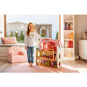 Dřevěný domeček pro panenky se stane splněným snem všech malých holčiček. Oblíbená hračka v novém designu v podobě pohádkové rezidence.