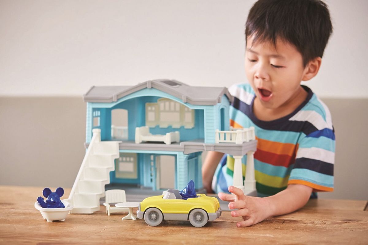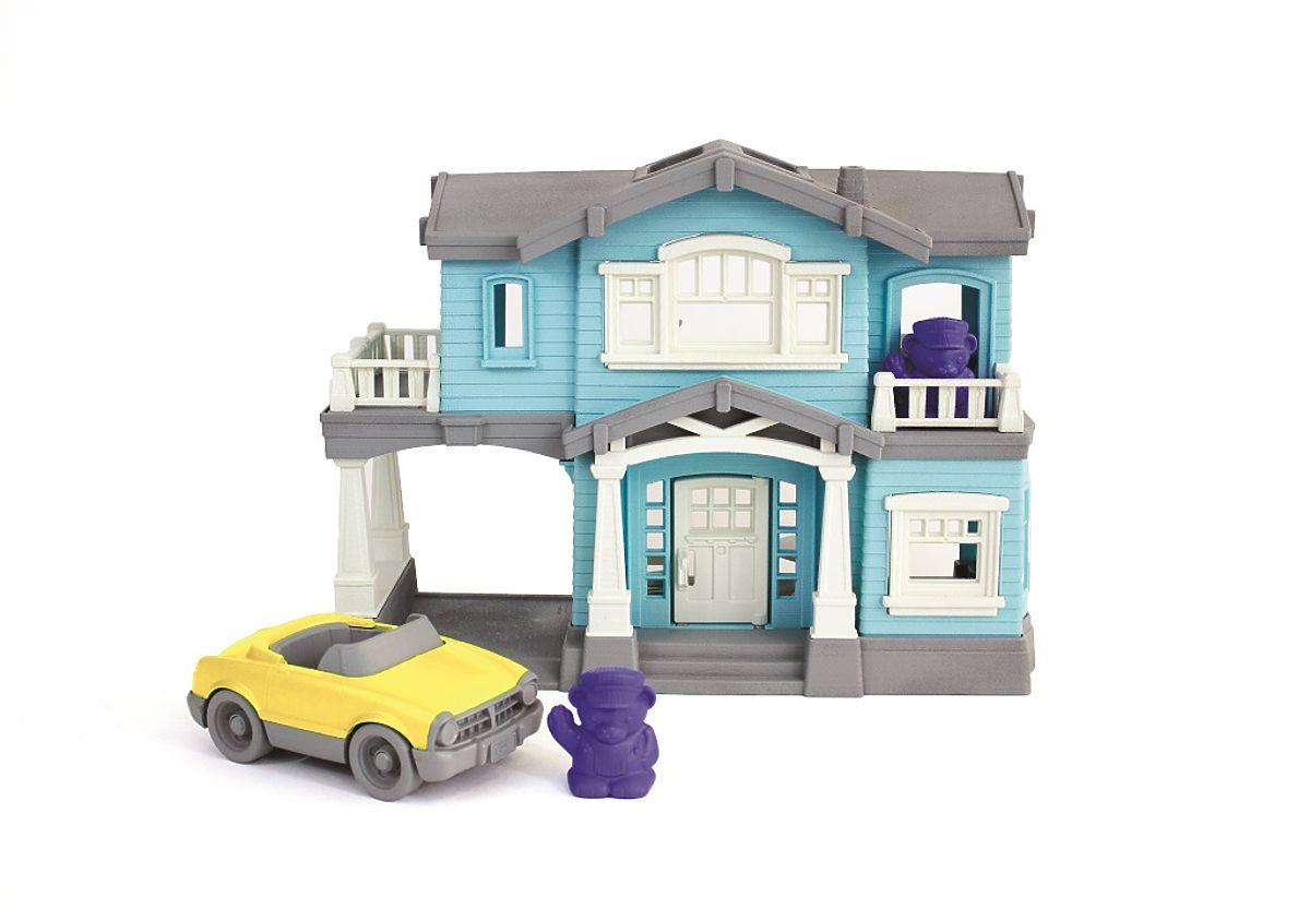 Poglejte, hišica Green Toys za igro polno domišljije in ustvarjalnosti! Ima dve nadstropji, v kompletu pa so tudi rumeni kabriolet, 2 figurici mišk, stopnišče, postelja, kad, miza in 2 stola. Premično stopnišče lahko v drugem nadstropju postavite kamorkoli, na balkon ali na zadnjo stran hiše. Kad, postelja, miza in stoli se prav tako prilegajo v katerokoli sobo. Hiša ima odprto zadnjo stran in balkone, otroci jo lahko opremijo po lastni zamisli. Spodbuja jih k sodelovalni in interaktivni igri. Deli se enostavno prilegajo v hišo, zato lahko ostanejo tam tudi izven igre in vam prihranijo prostor za shranjevanje. Igrača je netoksična, ne vsebuje BPA, PVC, ftalatov, niti zunanjega premaza. Izdelana je iz 100% reciklirane plastike. Če iščete plastične igrače za pesek ali vodo in vam je varnost vaših otrok zelo pomembna, si oglejte izdelke ameriške blagovne znamke Green Toys. Izdelujejo ekološke igrače, ki so priljubljene ne le v ZDA, podjetje s svojimi izdelki žanje neverjetne uspehe po vsem svetu. Green Toys, to je predvsem odgovorna proizvodnja igrač iz reciklirane plastike steklenic za mleko. Glavne lastnosti: hiša, 2 figurici, kabriolet, stopnišče, postelja, kad, miza, 2 stola, vsi deli se prilegajo v hišo, varen material brez BPA, PVC, ftalatov, primerno za pomivalni stroj, izdelano iz 100% reciklirane plastike v ZDA