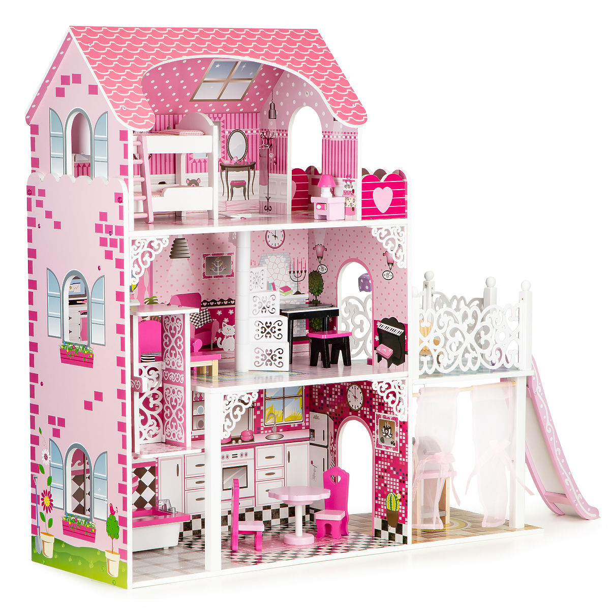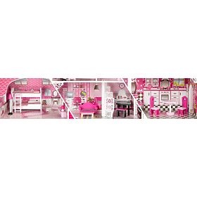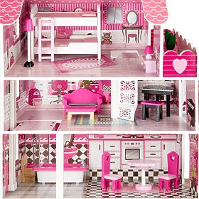Ta čudovita lesena hiška Victoria bo zagotovo ugajala vsaki mladi dami. Sedem sob, tri nadstropja, gibljivo dvigalo in leseno pohištvo zagotavljajo ure zabave in užitka.