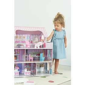 Ta čudovita lesena hišica Bella bo brez dvoma razveselila vsako mlado damo. V tej triposteljni rezidenci se nahaja pet ločenih sob, terasa in osem kosov lesenega pohištva, ki jih je mogoče poljubno premikati.