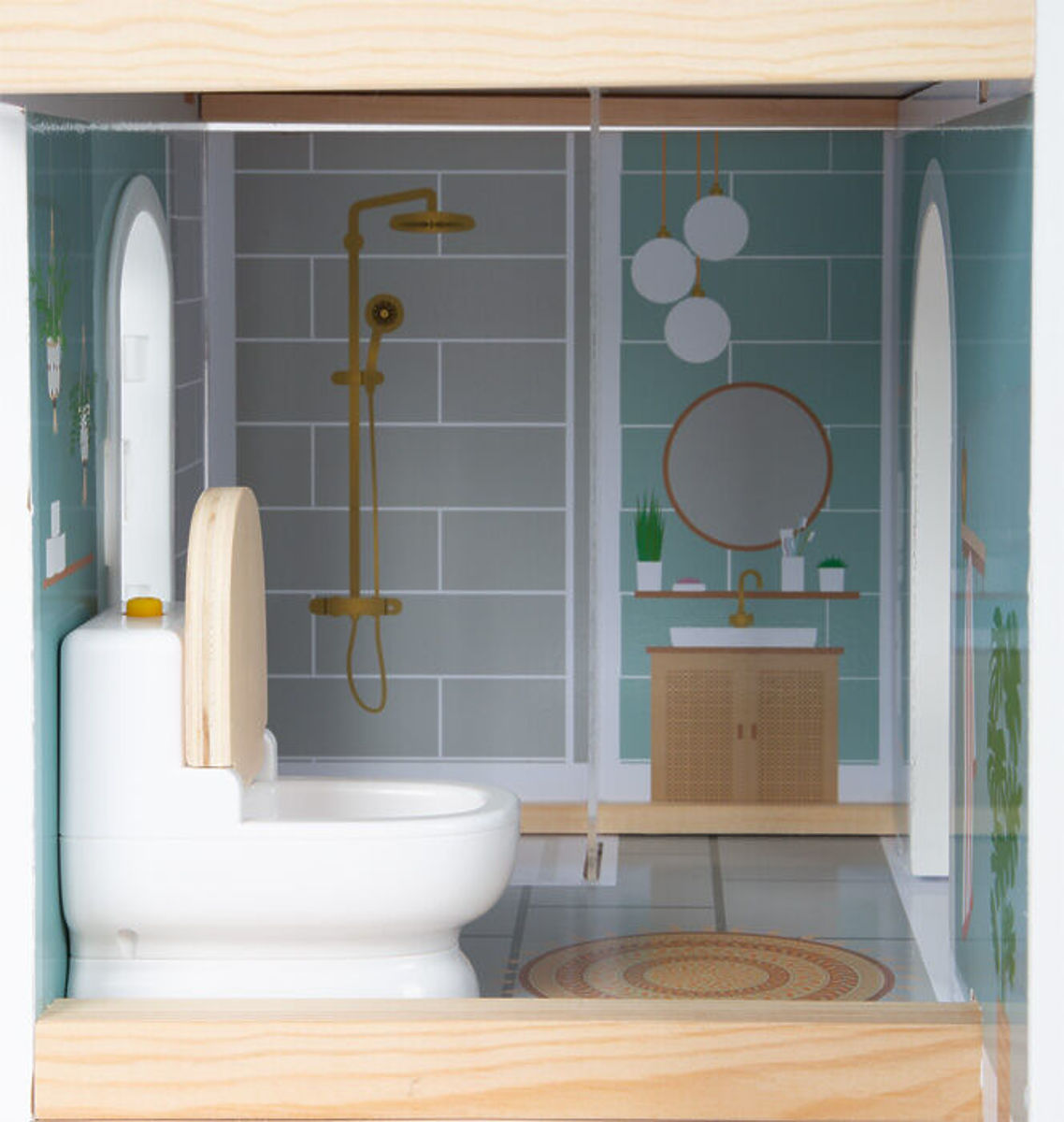 Ta moderna hiška za punčke ima odprto sprednjo stran s čudovitimi umetniškimi detajli in modernim interierjem. Kombinirana kuhinja z jedilnim kotom, spalnico, kopalnico in tudi majhno teraso s sedežno garnituro. Popolna igrača za domišljijsko igro otrok. Odprto bivanje s spiralnim stopniščem, odpirajočimi se okni, moderno kopalnico v pritličju, s pleksi steklom. Najdete tudi 8 kosov pohištva, tekstilne dodatke kot so posteljnina in blazine. Velika terasa s sedežno garnituro, odpirajoča se straniščna školjka, kuhinjske omarice in hladilnik z vrati, prav tako predali za realistično igro. Klop in postelja imata tekstilne blazine, postelja tudi odejo. Ta vila za punčke se bo prilegala vsakemu dnevnemu in otroškemu prostoru zaradi svetle fasade in modernih barv. Zaradi odprte strani se lahko s hiško igra več otrok hkrati. Primerno za punčke do 12 cm. Glavne lastnosti: 3 sobe, terasa, vrt funkcionalno pohištvo iz plastike z lesenimi detajli svetel eksterier in moderno barvno shemo kompaktna in stabilna lesena hiška z mnogimi detajli znotraj in zunaj 2 nadstropji povezana s spiralnim stopniščem modern dizajn interierja, odpirajoča se okna, stena tuša iz pleksi stekla kompatibilna s figuricami LE11804