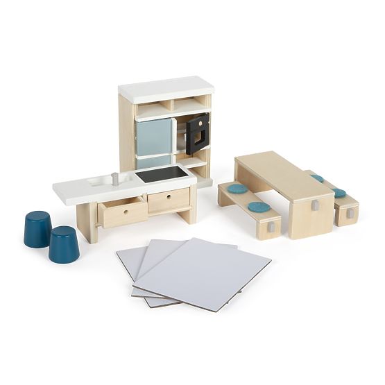 Kuhinjski set za hišico za punčke z modernim videzom in realističnimi elementi. .. več