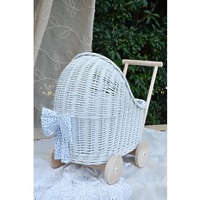 Pleten voziček za punčke iz unikatne otroške "country" kolekcije. Je čudovit in unikaten voziček za punčke, ki bo izpolnil sanje vsake mlade dame. Ima lesen ročaj, ki se nahaja nižje od standardnega vozička in stabilno konstrukcijo, ki omogoča varno igro manjših otrok. Lesena kolesa dajejo vozičku estetsko vrednost in edinstven retro stil.
