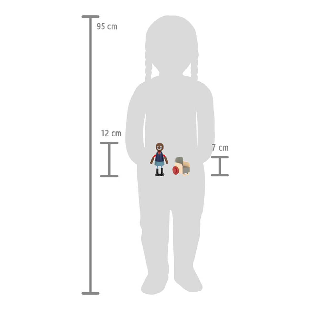 Popestrite svojo zbirko! Ta moderna 6-članska družina lesenih lutk čaka na svoj novi dom! Upogljive lutke so različnih spolov, starosti in barv kože. Glava in telo sta iz masivnega lesa. Roke in noge so upogljive. Fizične omejitve, povezane z vidom ali gibljivostjo, je mogoče vključiti v igro s podrobnostmi, kot so očala in invalidski voziček. Igranje vlog s tem kompletom spodbuja razvoj identifikacije, komunikacije, domišljije in socialnih veščin. Glavne značilnosti: razvija domišljijo in kreativnost, trenira fino motoriko, spodbuja komunikacijo in socialne veščine.