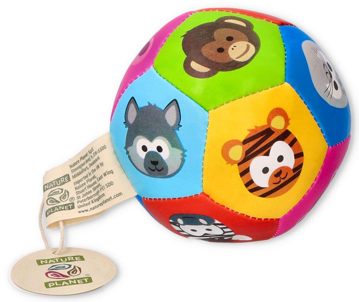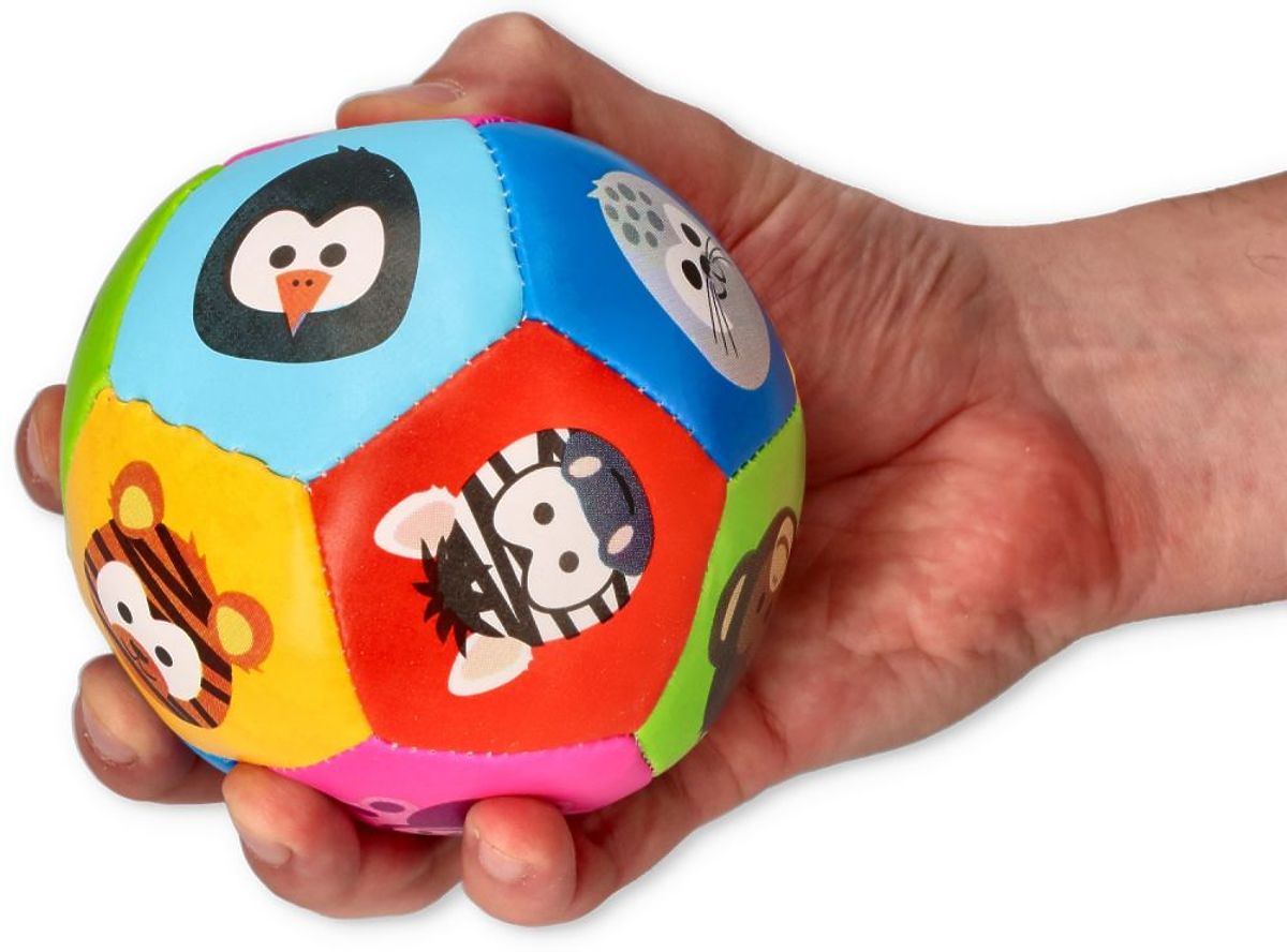 Barvna žogica z živalmi je preprosta, klasična igrača, ki jo vsak pozna in ima rad. Kljub svoji preprostosti razvija motoriko in spodbuja k aktivnosti. Njena velikost je idealna za majhne roke - otrok jo lahko stiska, tlači in meče. Z igranjem z žogico se otrok uči prepoznavati barve in razvija motoriko rok. Zaradi slik živali se otrok na zanimiv način uči njihovih imen. Pri igri z žogo se otrok uči sodelovanja in zdrave tekmovalnosti. Odporna poliestrska tkanina je izjemno mehka na dotik, idealna za prve igre z žogicami.
