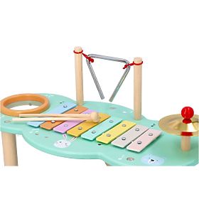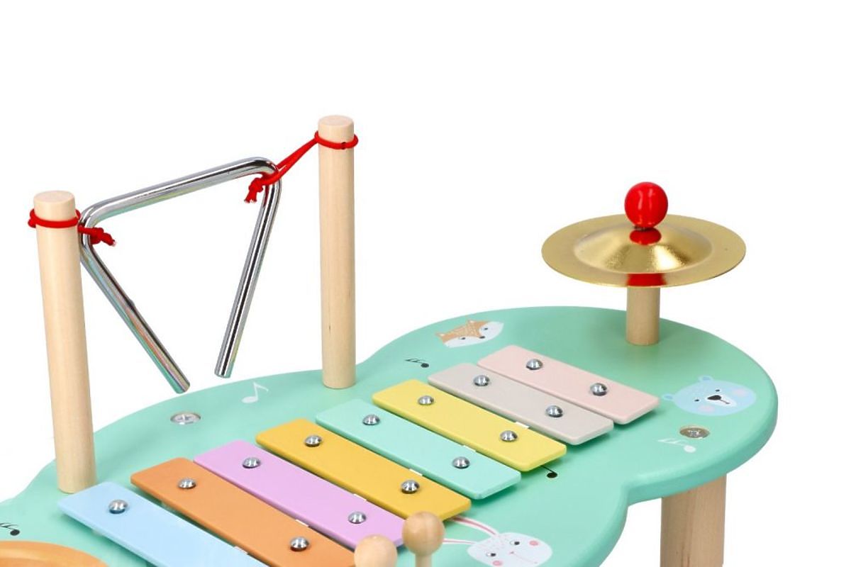 Barvita glasbena miza, sestavljena iz štirih glasbil. Miza je okrašena v nežnih pastelnih barvah in ima motive ljubkih gozdnih živalic: medvedkov, lisic in .. več