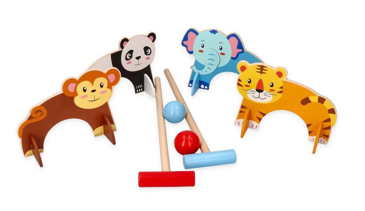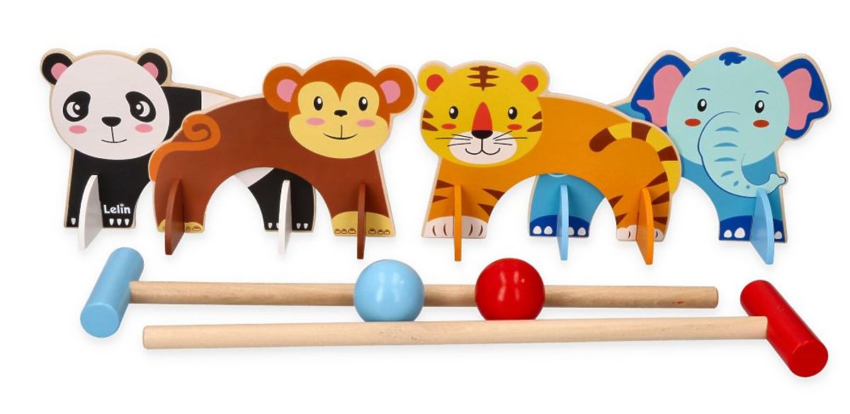 Odlična ideja za preganjanje dolgčasa in družinsko zabavo. Predstavljamo igro kroket z veselimi živalmi znamke Lelin. Izdelek je primeren tako za zunanjo kot .. več