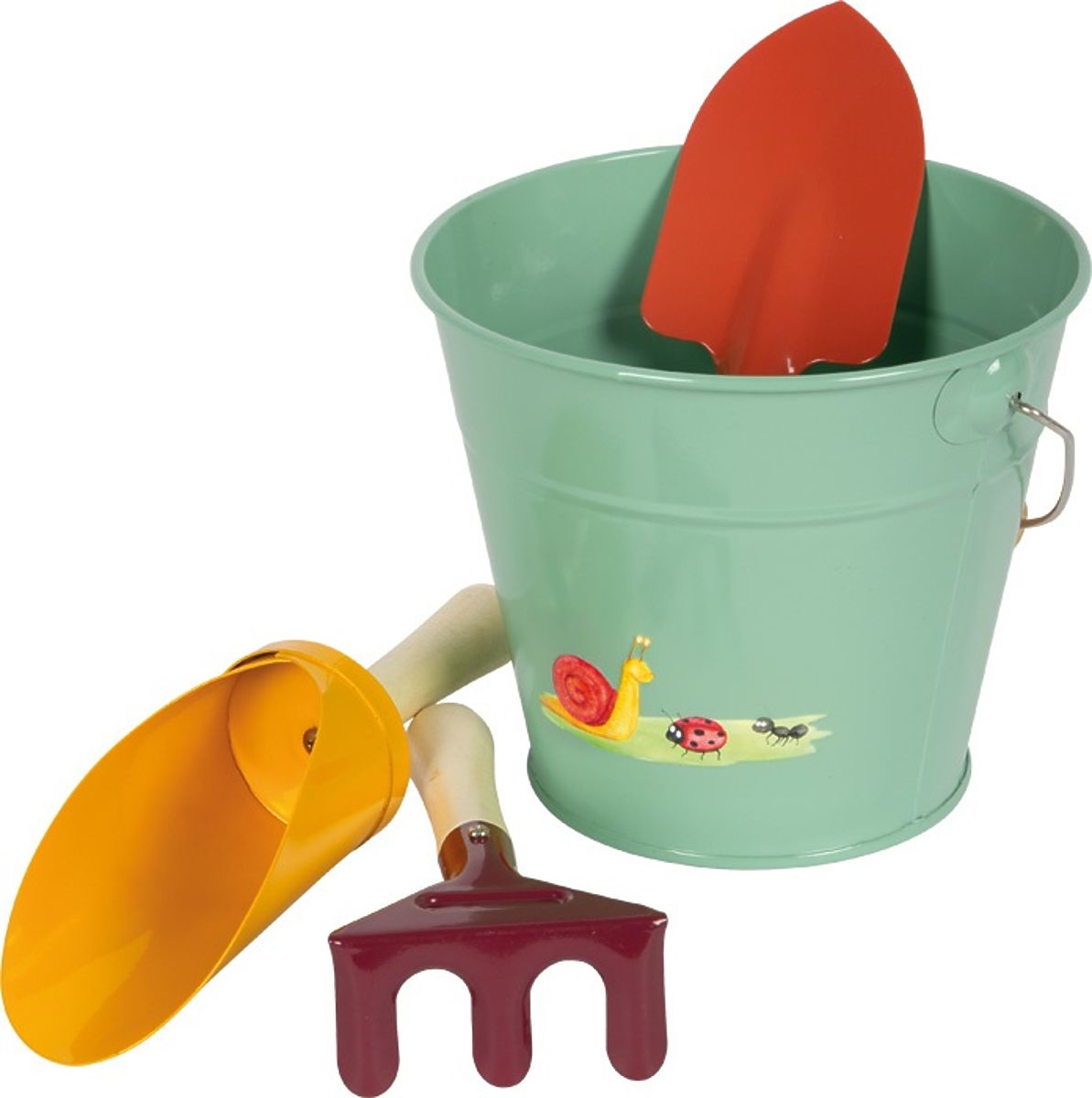 Set vrtnega orodja z vedrom "Tiny Garden" bo razveselil vse male vrtnarje in graditelje peščenih gradov. Trdno orodje iz kovine in lesa je zasnovano posebej za otroške roke, kovinsko vedro z veselimi živalskimi motivi pa celotnemu setu dodaja igriv pridih. Ne glede na to, ali otroci kopljejo, sadijo, prenašajo vodo ali oblikujejo grad iz peska, bodo imeli vse potrebno lepo pri roki. Zaradi svoje praktične velikosti se enostavno prenaša in uporablja kjerkoli – od vrta do plaže. Kovinsko vedro je poleg tega pravi pomočnik – odlično služi za vodo, pesek in zemljo. Glavne lastnosti: 4-delni set: 2x lopatka, grablje, kovinsko vedro robustna izvedba iz kovine in lesa, idealna za majhne roke trendovske barve in ljubki živalski motivi razvija motoriko, ustvarjalnost in odnos do narave vsestranska uporaba – za sajenje, kopanje, oblikovanje in prenašanje primerno za vrt, peskovnik in plažo