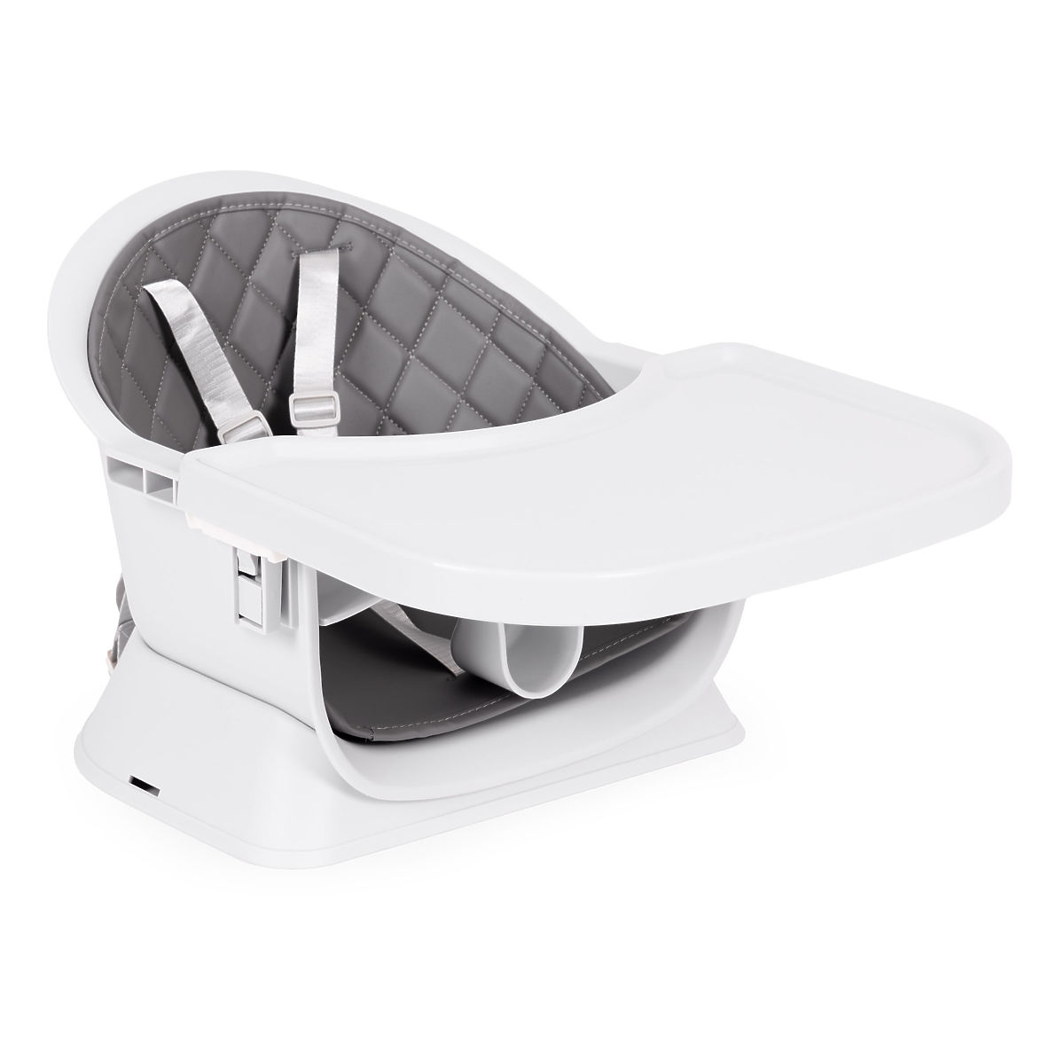 - Sistem pritrditve pladnja – omogoča hitro in stabilno pritrditev ter enostavno odstranitev z eno roko. Tako lahko udobno vzamete otroka iz stolčka ali operete pladenj brez potrebe po demontaži celotne konstrukcije.