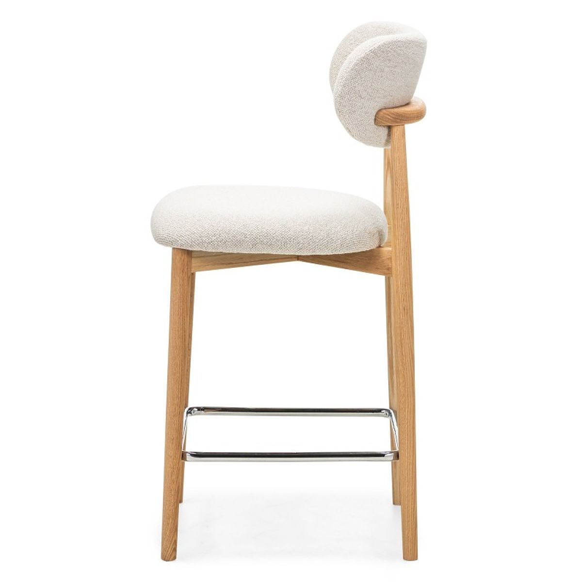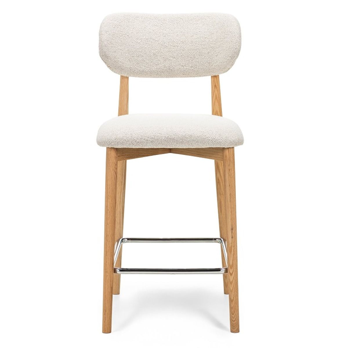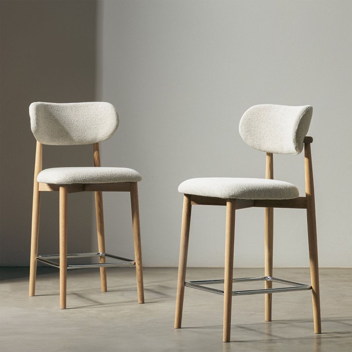 Barski stol z oblazinjenjem iz kremne tkanine in hrastovimi nogami. .. več