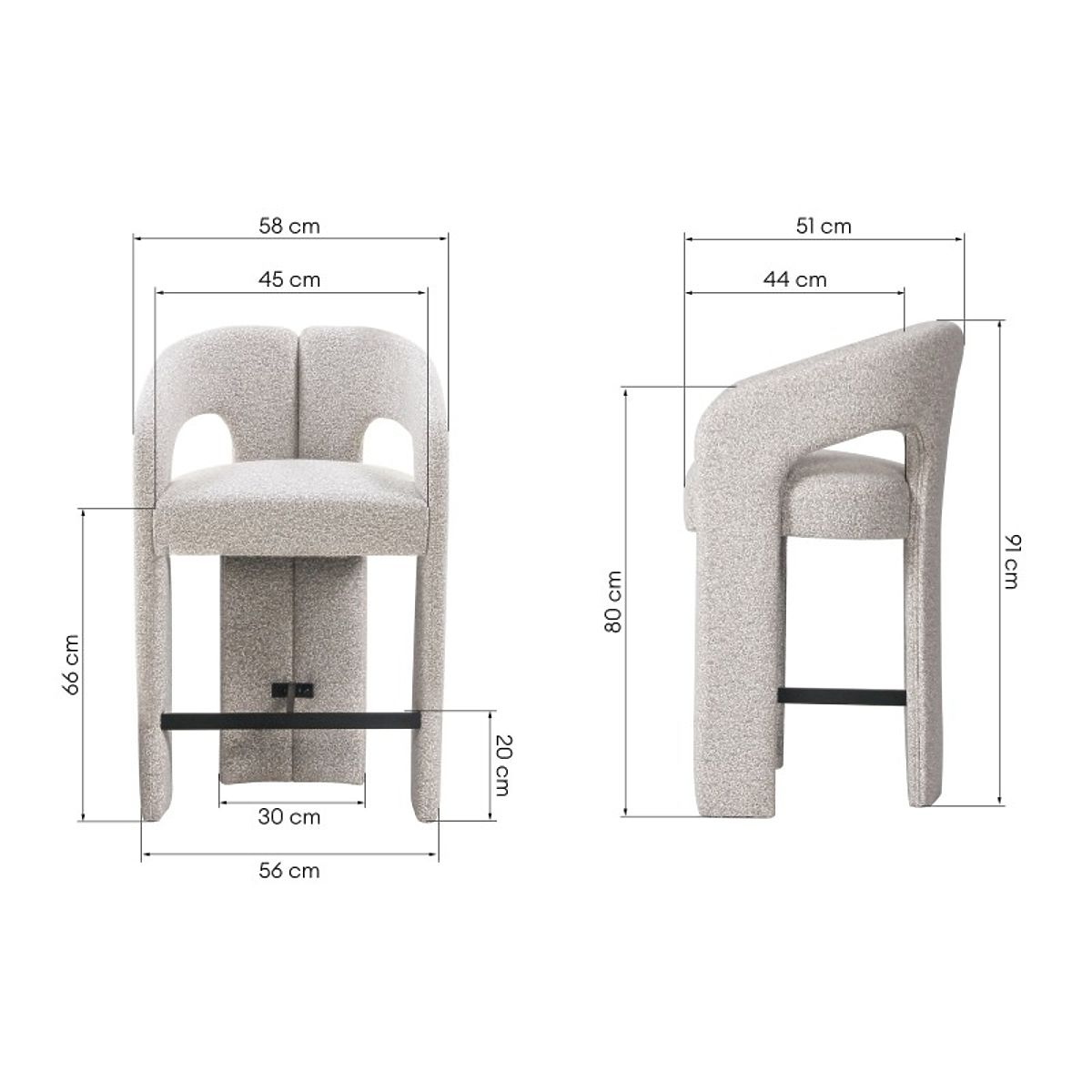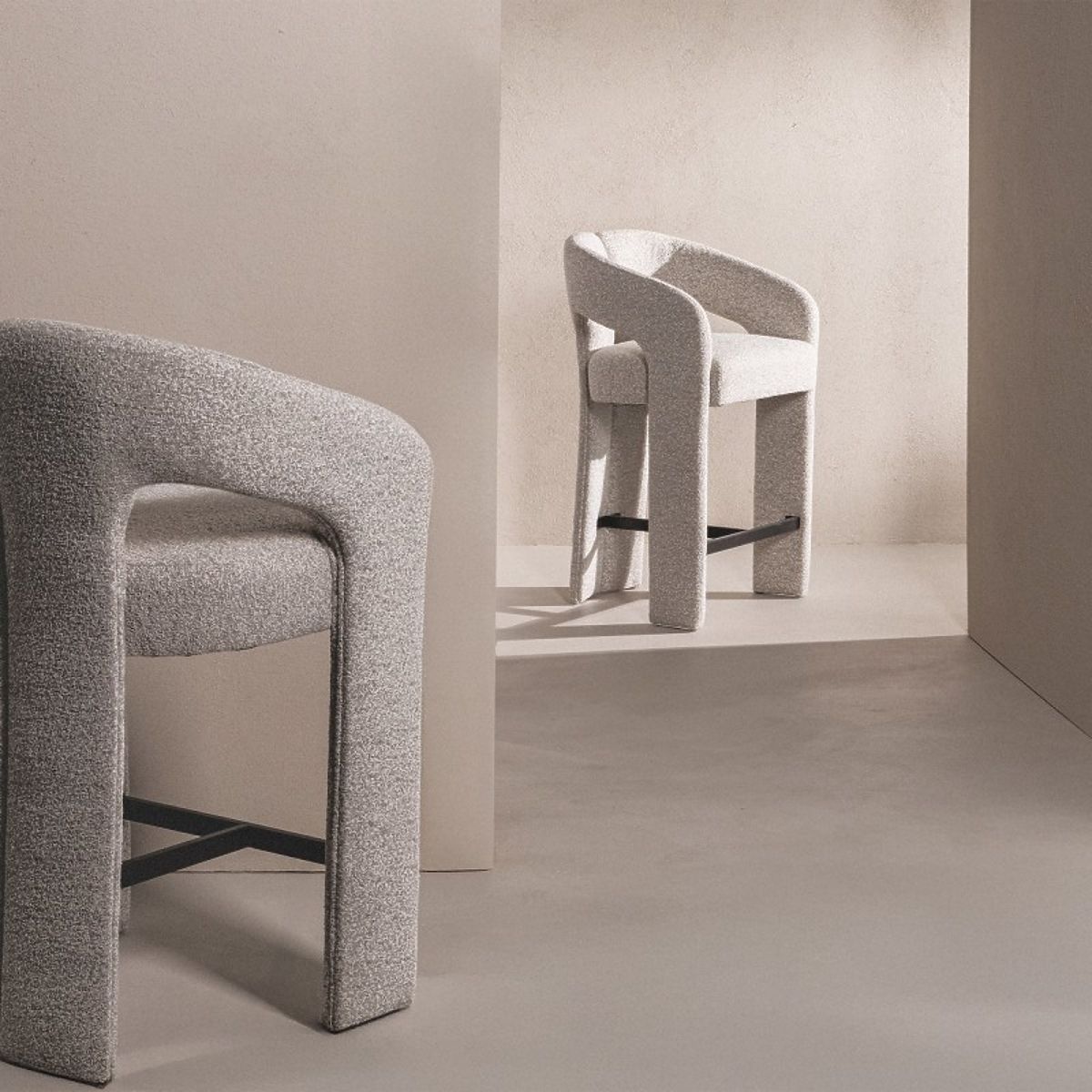 Barski stol Castelo je kombinacija modernega minimalizma in prijetne elegance. Mehka tkanina, zaobljena oblika in udobni naslonjali za roke zagotavljajo vsakodnevno udobje, medtem ko izpopolnjeni detajli omogočajo, da je idealen za kuhinjo ali jedilnico.