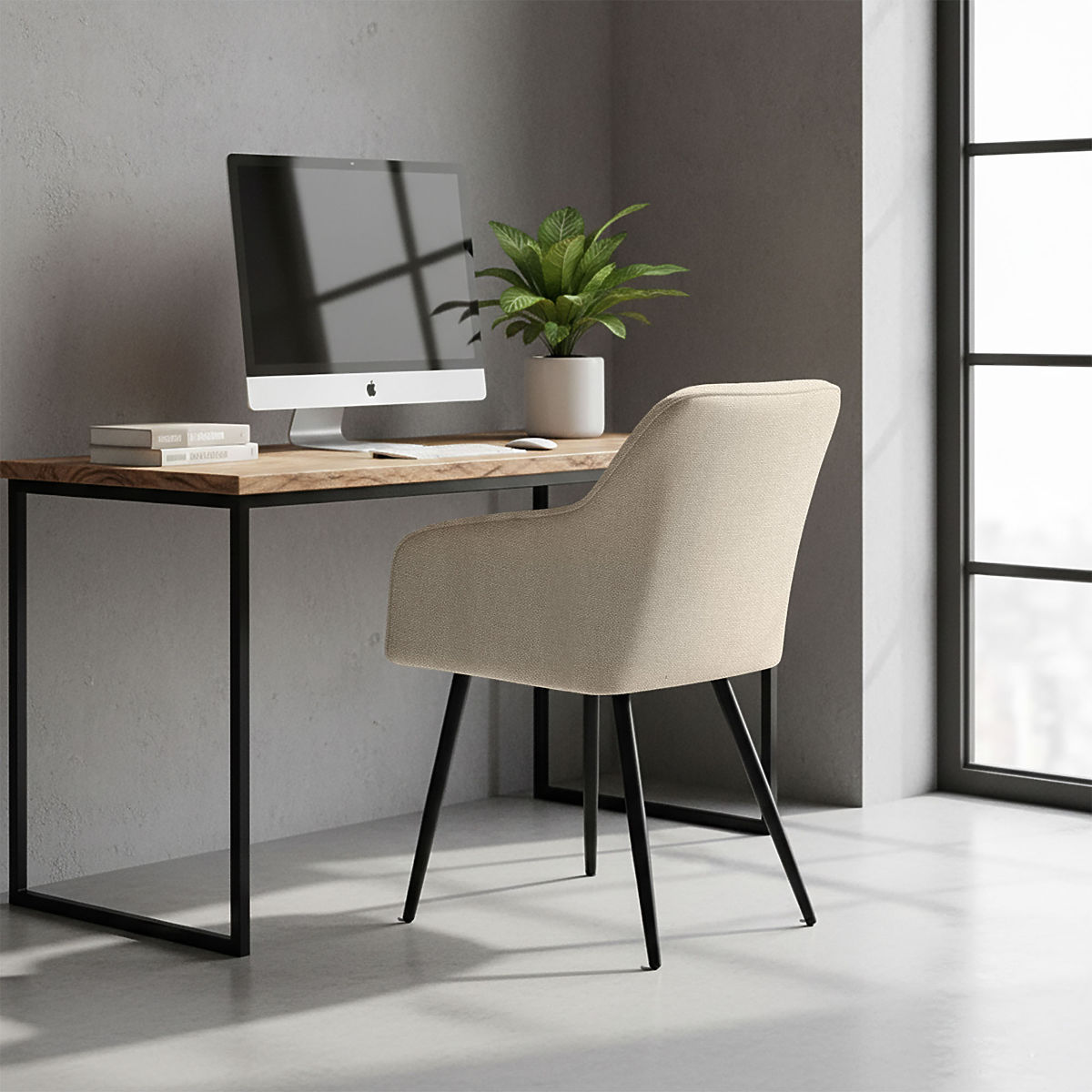 47874-0 4x Oblazinjeni stol s kvadratnim prešitjem Bež LUXANO Črne noge tkanina Lumos