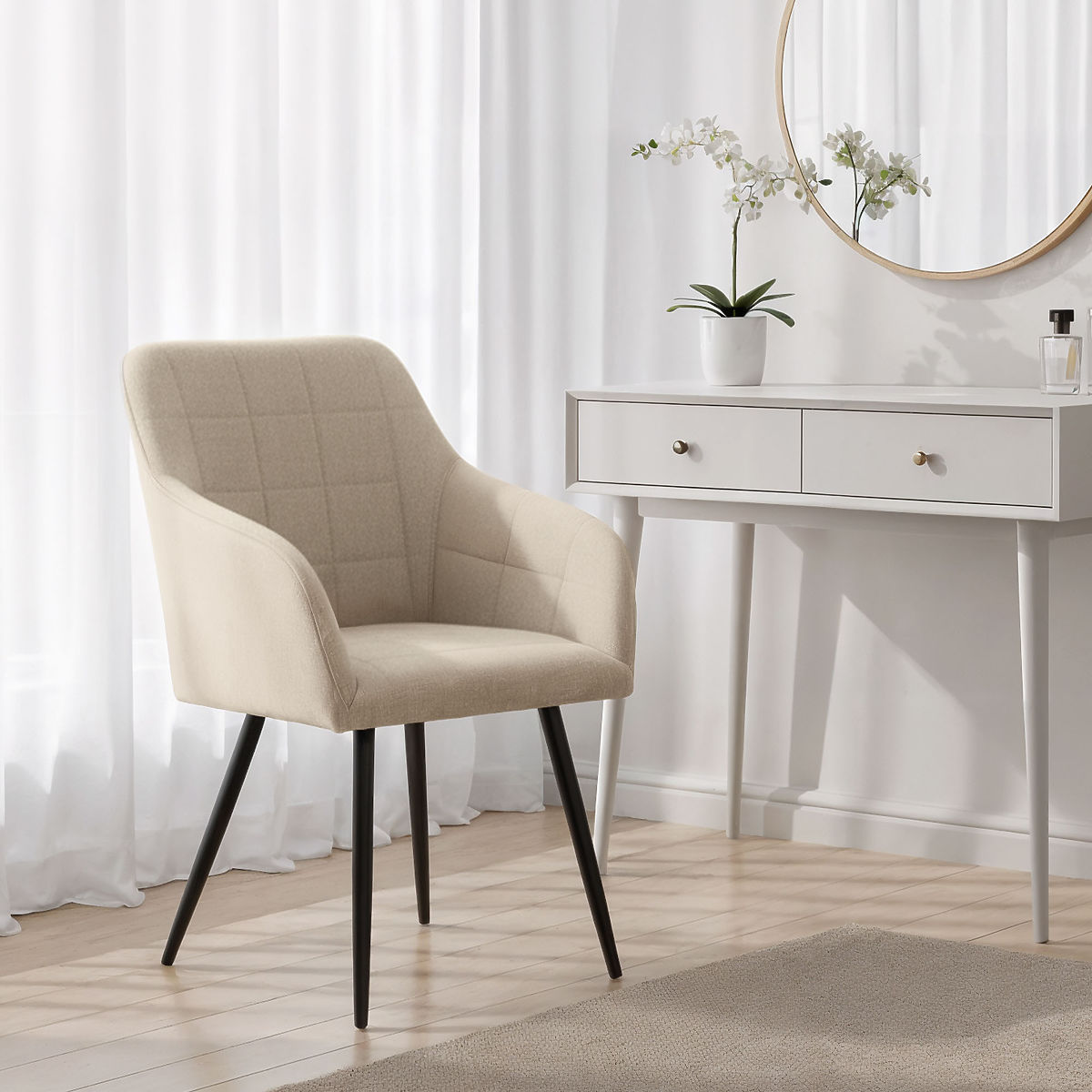 Banaby.si   »   Pohištvo   /   Jedilnice   /   Jedilni stoli   /   Jedilni stoli   /   4x Oblazinjeni stol s kvadratnim prešitjem Bež LUXANO Črne noge tkanina Lumos
