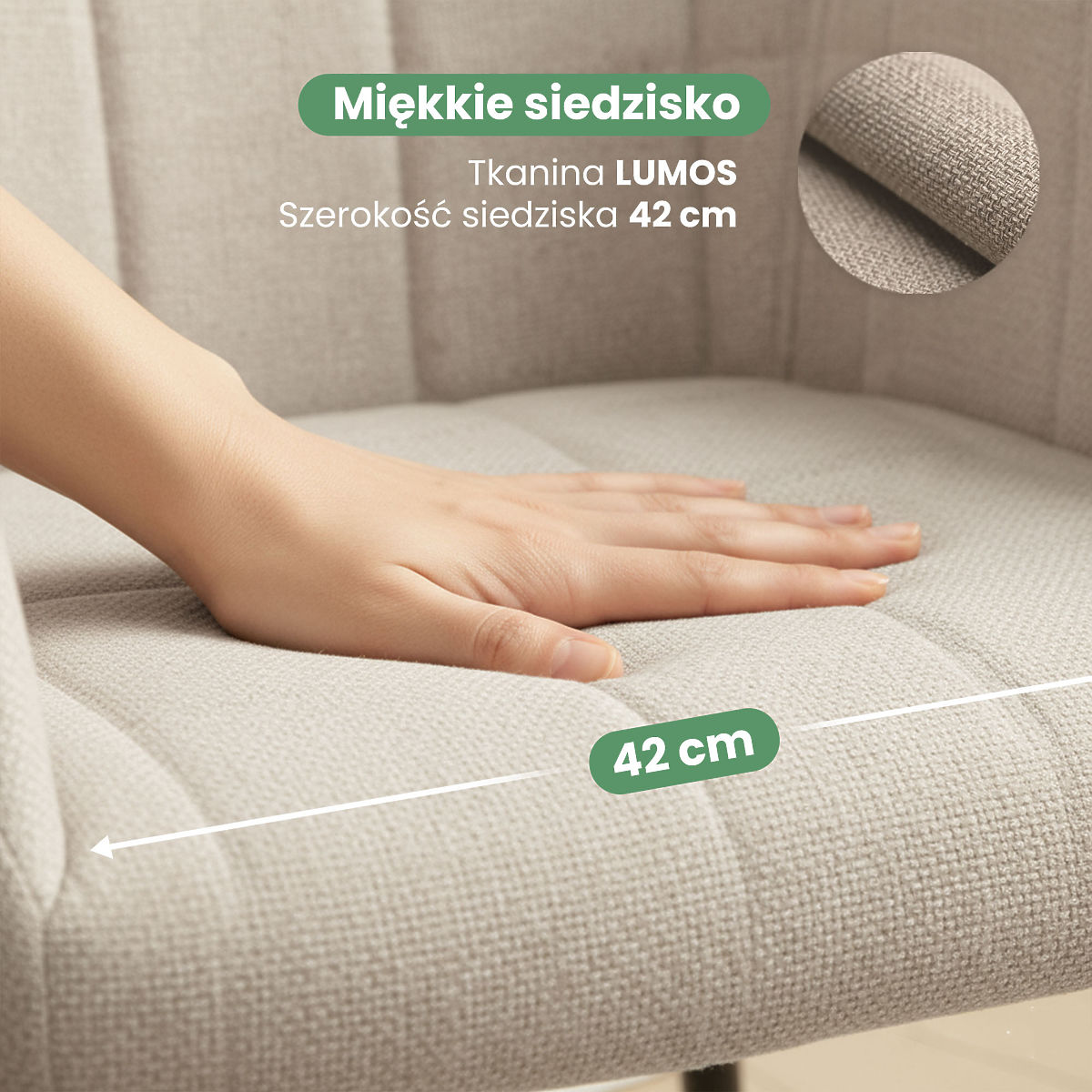 Oblazinjeni jedilni stol LUXANO z mehkim prešitjem in bež tkanino Lumos. .. več