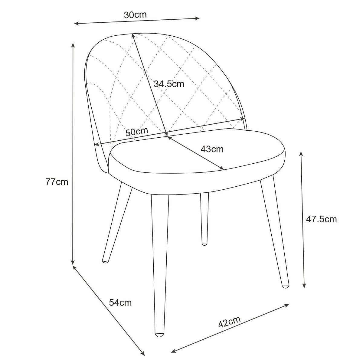 Elegantni žametni prešiti stoli SJ.077 so odlična izbira za stilsko urejeno jedilnico, pisarno ali študentsko sobo. Ta model se odlikuje po zelo lahki in enostavni konstrukciji, zaradi česar ne obremenjuje prostora in je primeren tudi za manjše prostore.