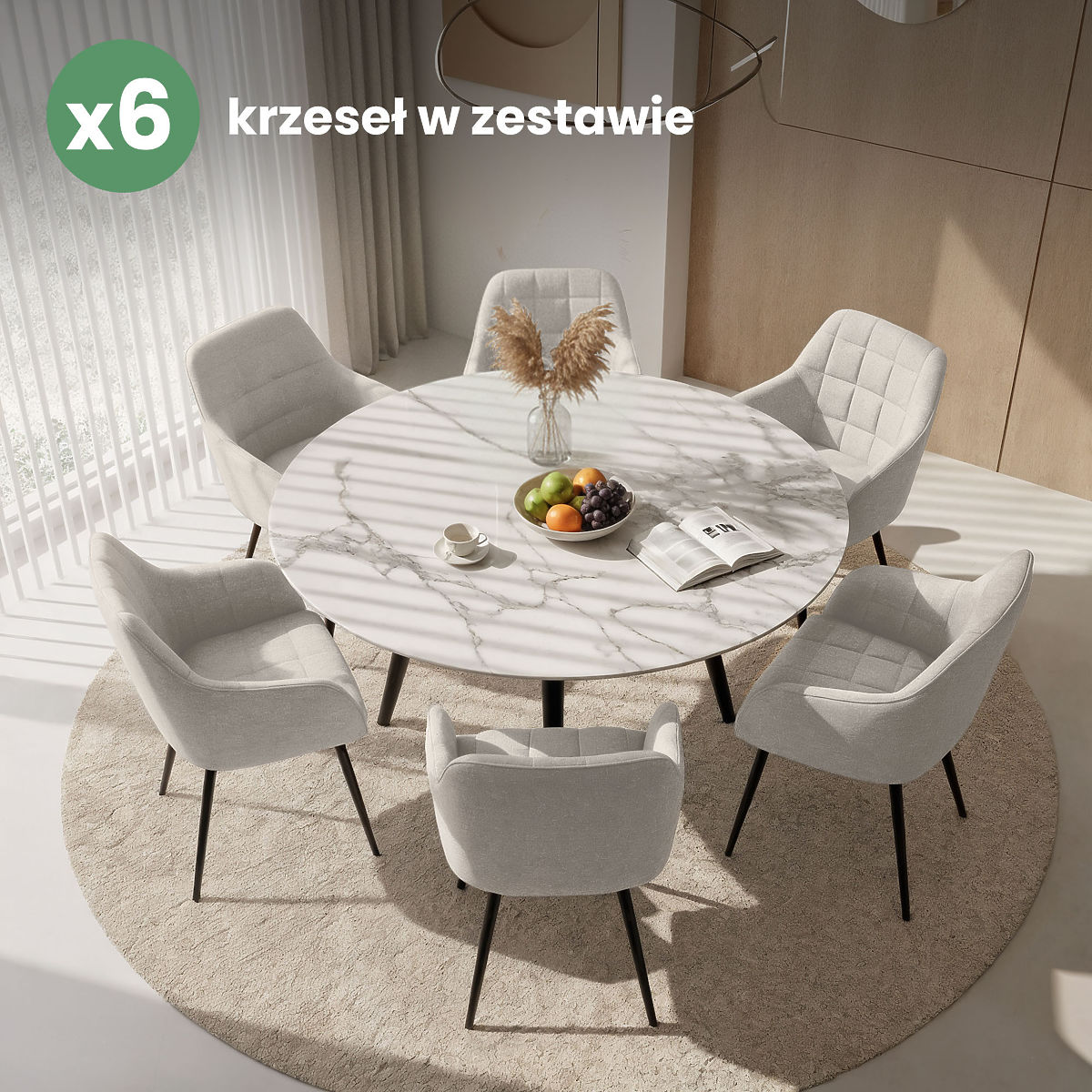 Banaby.si » Pohištvo / Jedilnice / Jedilni stoli / Jedilni stoli / 6x Oblazinjeni stol s kvadratnim prešitjem Krem LUXANO Črne noge tkanina Lumos