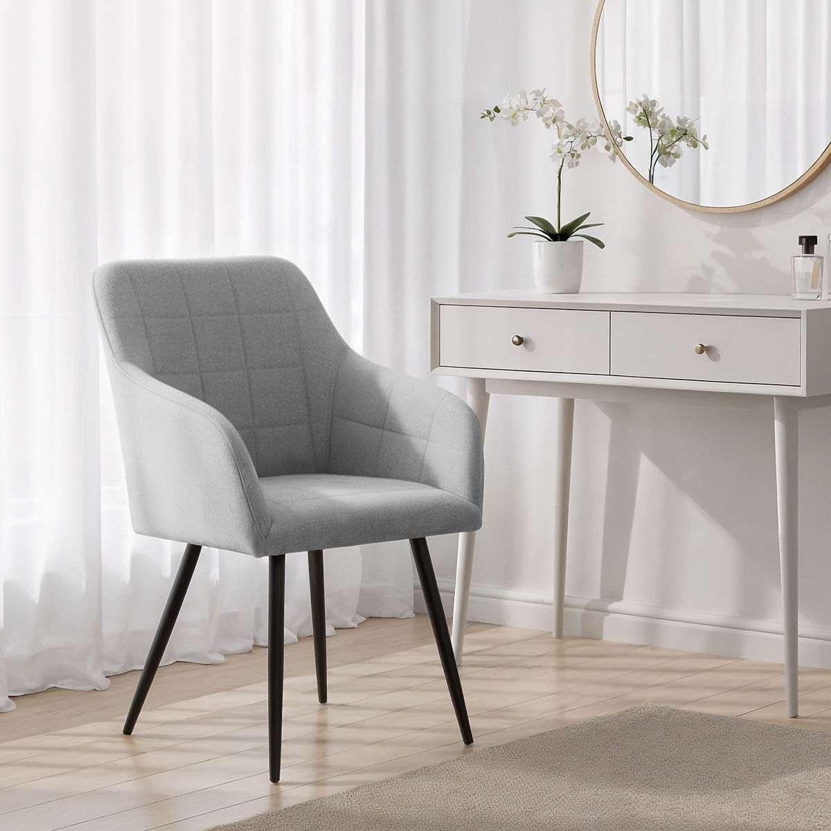 Banaby.si » Pohištvo / Jedilnice / Jedilni stoli / Jedilni stoli / 6x Oblazinjeni stol s kvadratnim prešitjem Svetlo Siva LUXANO Črne noge tkanina Lumos