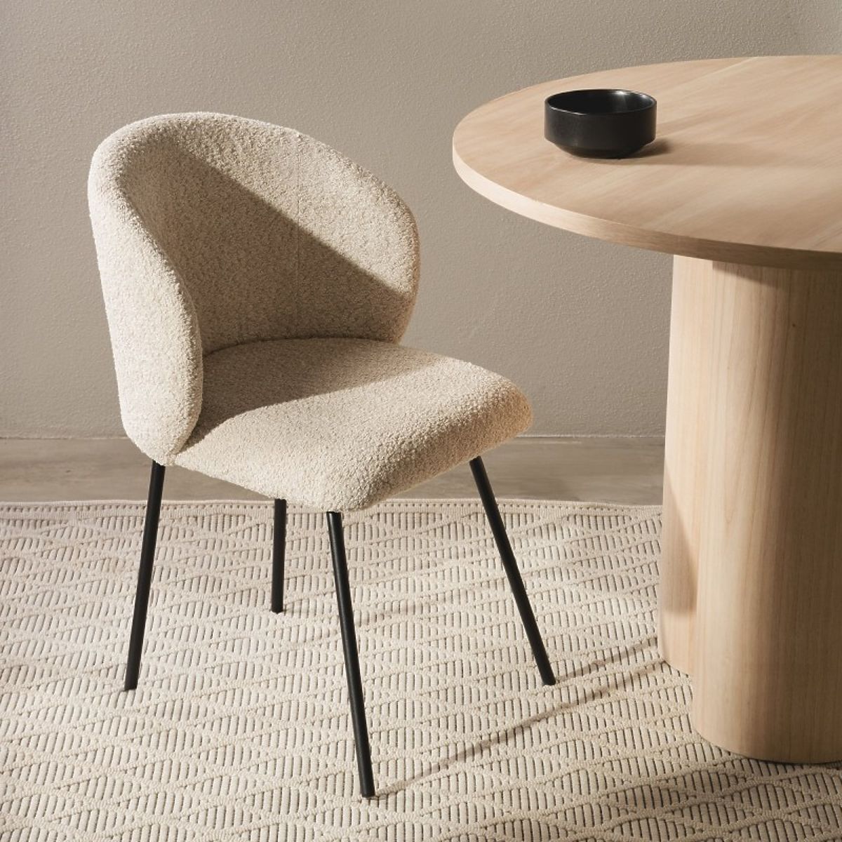 Stol Larisa je kos pohištva z izjemnim dizajnom, ki zlahka poudari eleganco vsakega interierja. Prijetna na dotik oblazinjenje v bež odtenku odlično kontrastira s črnimi kovinskimi nogami, kar ustvarja stilski in moderen videz. Mehko sedišče in rahlo zaobljeno naslonjalo zagotavljata ne le estetiko, temveč tudi neprekosljivo udobje. Larisa je idealna rešitev za tiste, ki želijo združiti izvirno obliko s funkcionalnostjo v vsakodnevni uporabi.