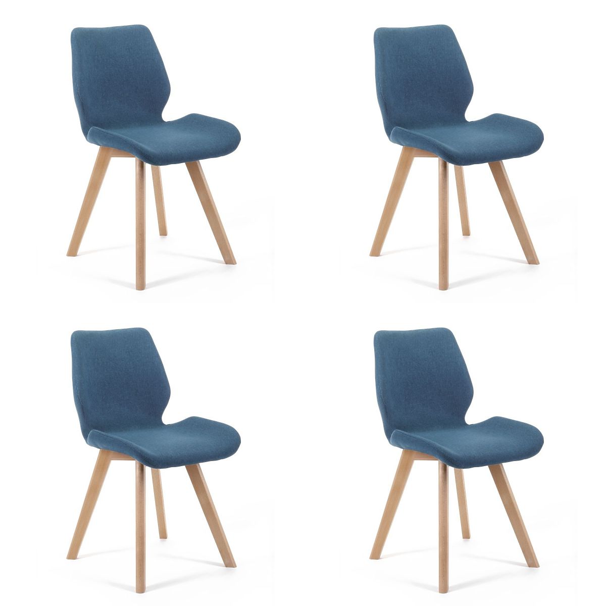 Eleganten stol v modri barvi. Lesene noge dajejo temu izdelku modernost in hkrati stilnost. Stol je zaradi tekstilnega oblazinjenja zelo lep in hkrati udoben. Primeren je za dnevno sobo, pisarno, spalnico, čakalnico ali recepcijo. Stoli se prodajajo v kompletih - 4 kosi v enem paketu.