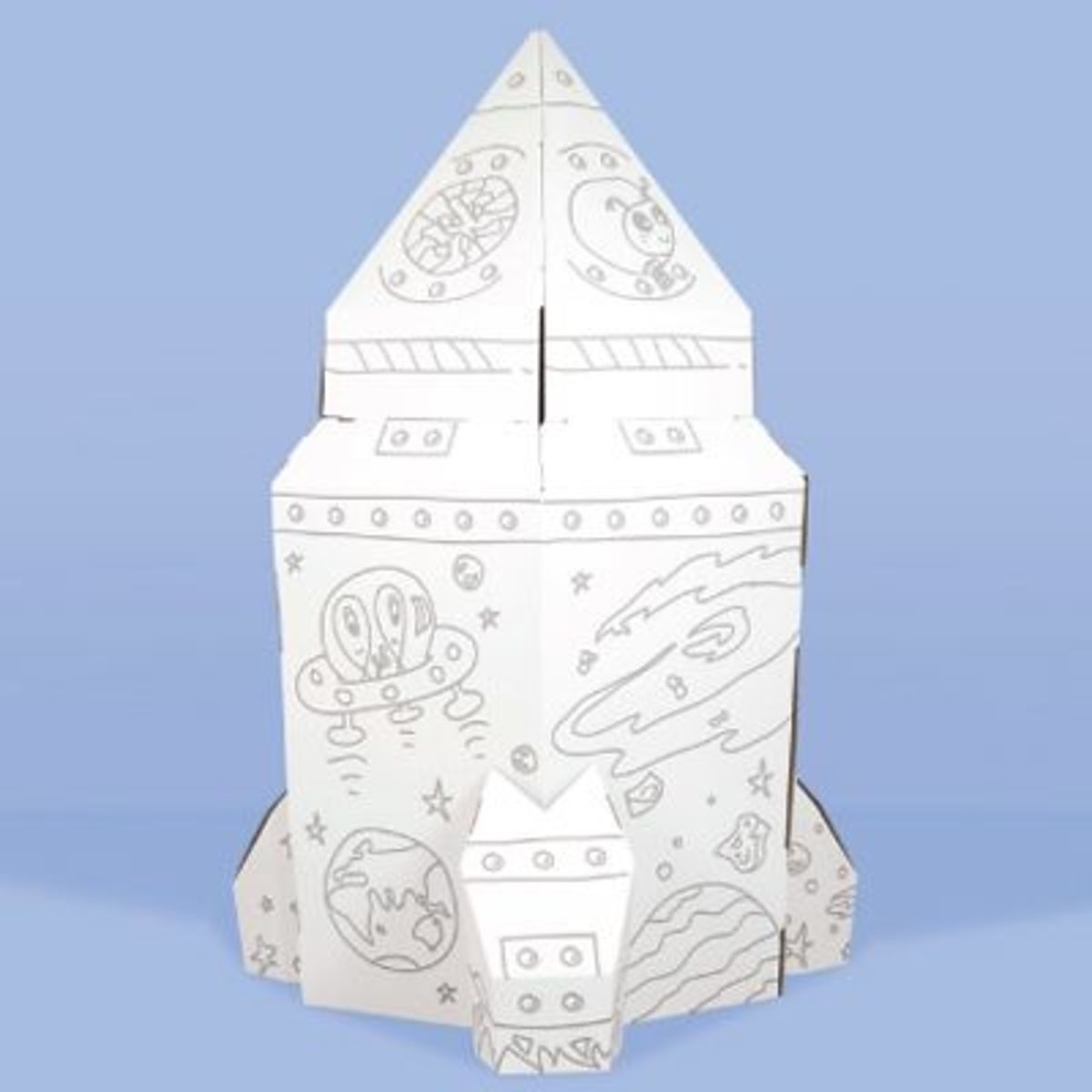 Raketa je izdelana iz 5-slojne bele valovite lepenke, za sestavljanje in barvanje. (ne potrebuje lepila ali škarij!)