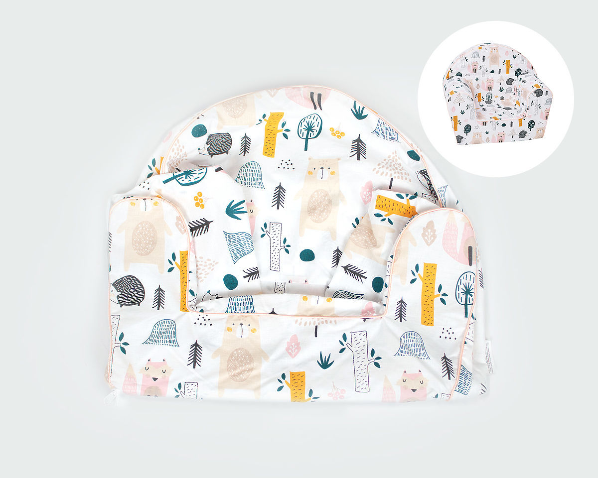 Čudovita prevleka za otroški stol z motivom gozdnih živali. Videz fotelja v otroški sobi lahko preprosto spremenite z različnimi motivi iz naše ponudbe.
