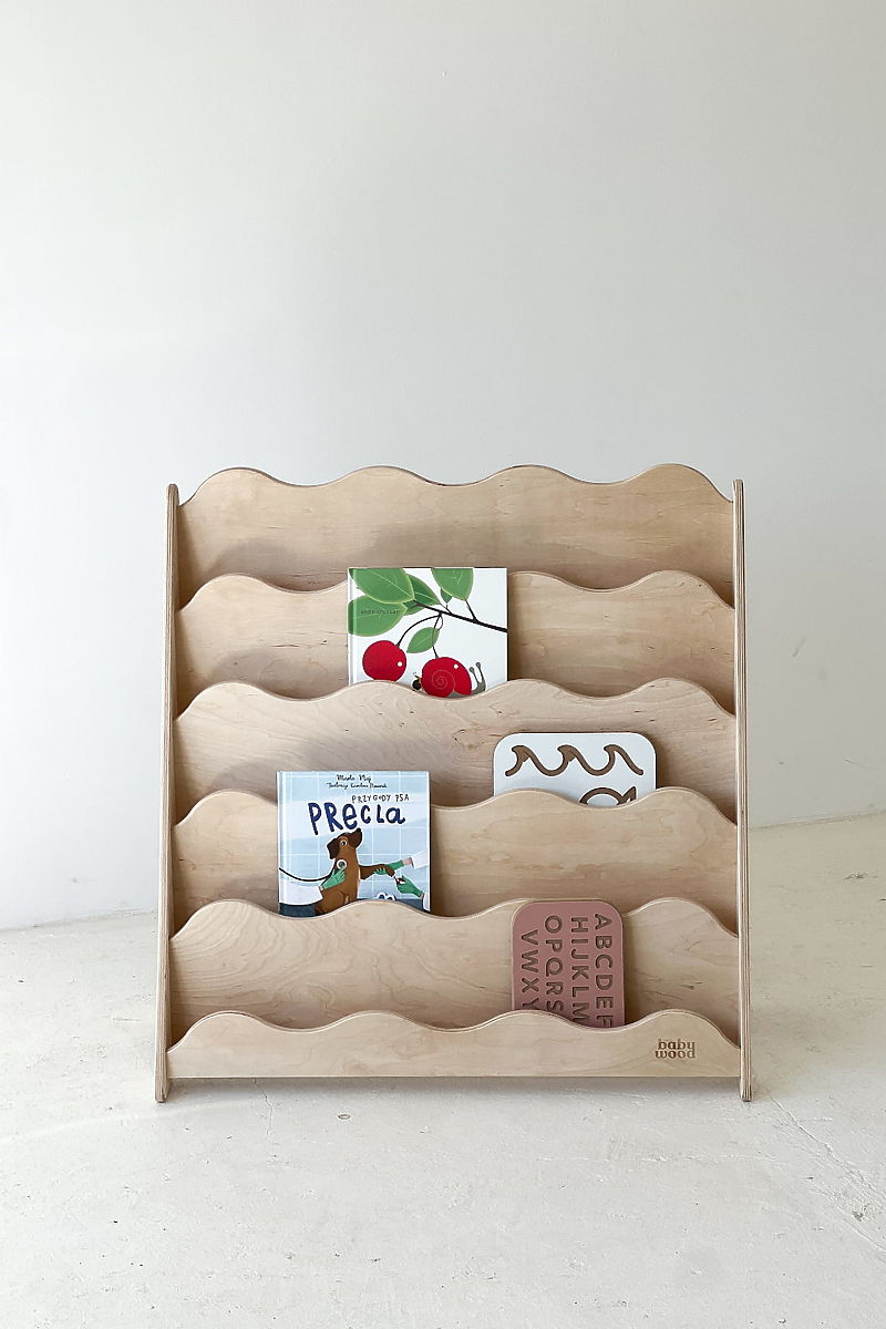 Predstavljajte si kotiček, kjer imajo vse najljubše pravljice in zgodbe vašega otroka svoje mesto. Mesto, kamor mali bralec pristopa z nasmehom in si sam izbere knjigo za večerno branje. Knjižna polica WAVE M je to mesto – njene nežne valovite sprednje letve prostoru dodajajo lahkotnost in domačnost ter hkrati delujejo kot dekorativni element otroške sobe. Zahvaljujoč njej si otrok lahko sam izbere knjige, razvija samostojnost in hkrati igrivo organizira svoj mali svet. V kombinaciji s posteljami iz iste kolekcije ustvarja stilsko in funkcionalno otroško ureditev.