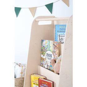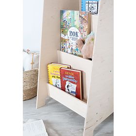 Knjižna omara ni le praktičen kos pohištva. Zaradi premišljene zasnove in naravne barve ni primerna le za otroško sobo v slogu Montessori. Poleg tega lahko knjige shranjujete tako, da je videti sprednjo platnico, kar malemu bralcu omogoča, da si jih ogleda od blizu, in ga spodbuja k branju.