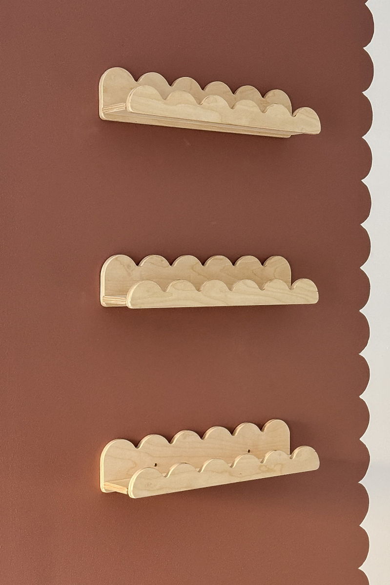 Polica WAVE v naravni barvi je praktičen in dekorativen dodatek za otroško sobo, ki pomaga ohranjati red in hkrati dodaja prijeten, naraven pridih. Z gibljivo obrobo lahko enostavno spreminjate njen videz in razstavljate ali skrivajte priljubljene drobnarije vašega otroka – knjige, figurice, fotografije ali majhne dekoracije. Dizajn police omogoča kombiniranje več kosov skupaj in ustvarjanje izvirne, funkcionalne in estetske stene, ki raste z otrokovimi potrebami. Zaobljeni robovi in gladka izvedba zagotavljajo varno uporabo tudi za najmlajše.