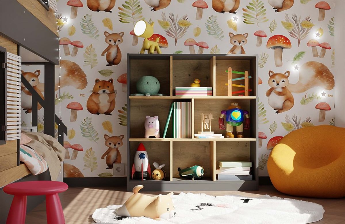 - 8 funkcionalnih polic/predelkov – idealnih za knjige, dekoracije ali shranjevalne škatle.