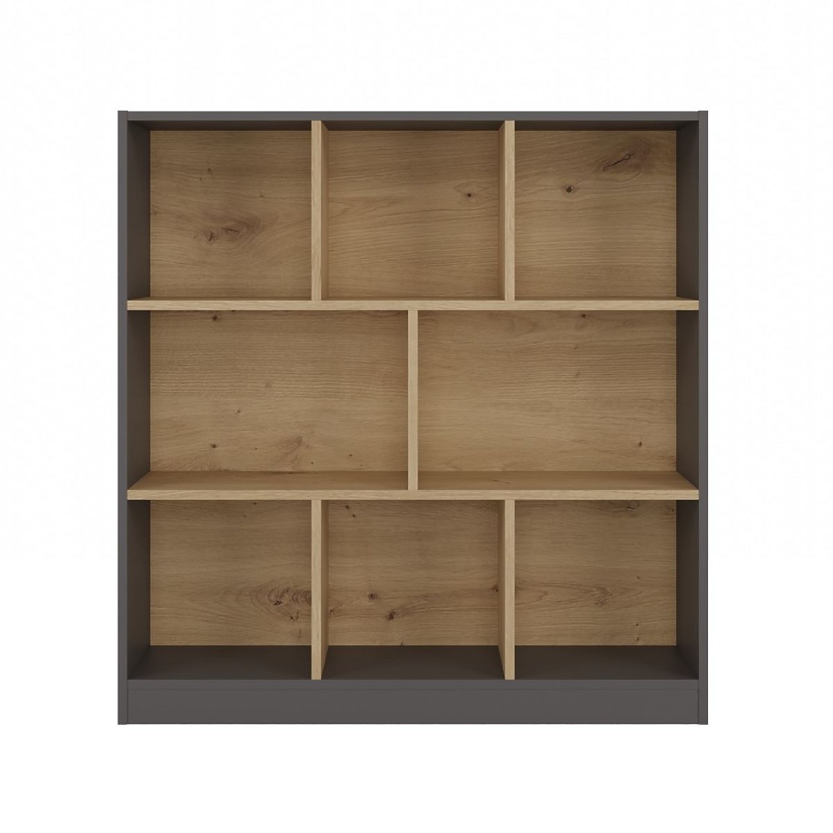 Zaradi 8 prostornimi in proporcionalno razporejenimi predelki omogoča polica FIESTA 8P estetsko shranjevanje knjig, dokumentov, okraskov ali škatel. Dekorativna kombinacija globokega antracita s toplim lesom hrasta artisan daje notranjosti sodoben in hkrati prijeten značaj.