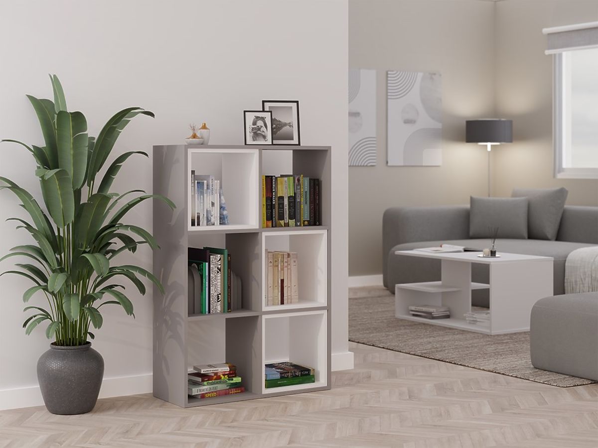 Polica MALAX 2X3 združuje sodoben dizajn in funkcionalnost, popolnoma se prilega različnim notranjostim. Njegova preprostost in eleganca ga naredita ne le praktičen, ampak tudi estetski element opreme.